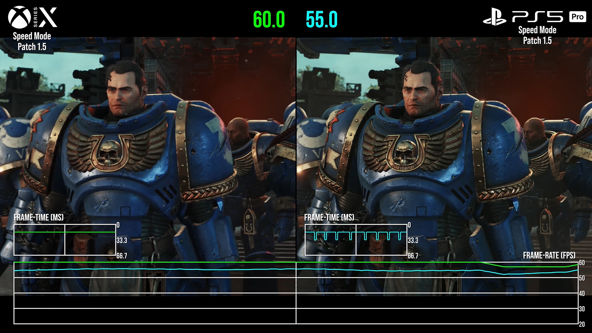 Another thing that might surprise fans is that, in one instance, the Xbox Series X has a 5 FPS advantage over the PS5 Pro in Space Marine 2. After patch 1.5, the Xbox Series X can be seen having an advantage over the PS5 Pro, but in most cases, the latter prevails.