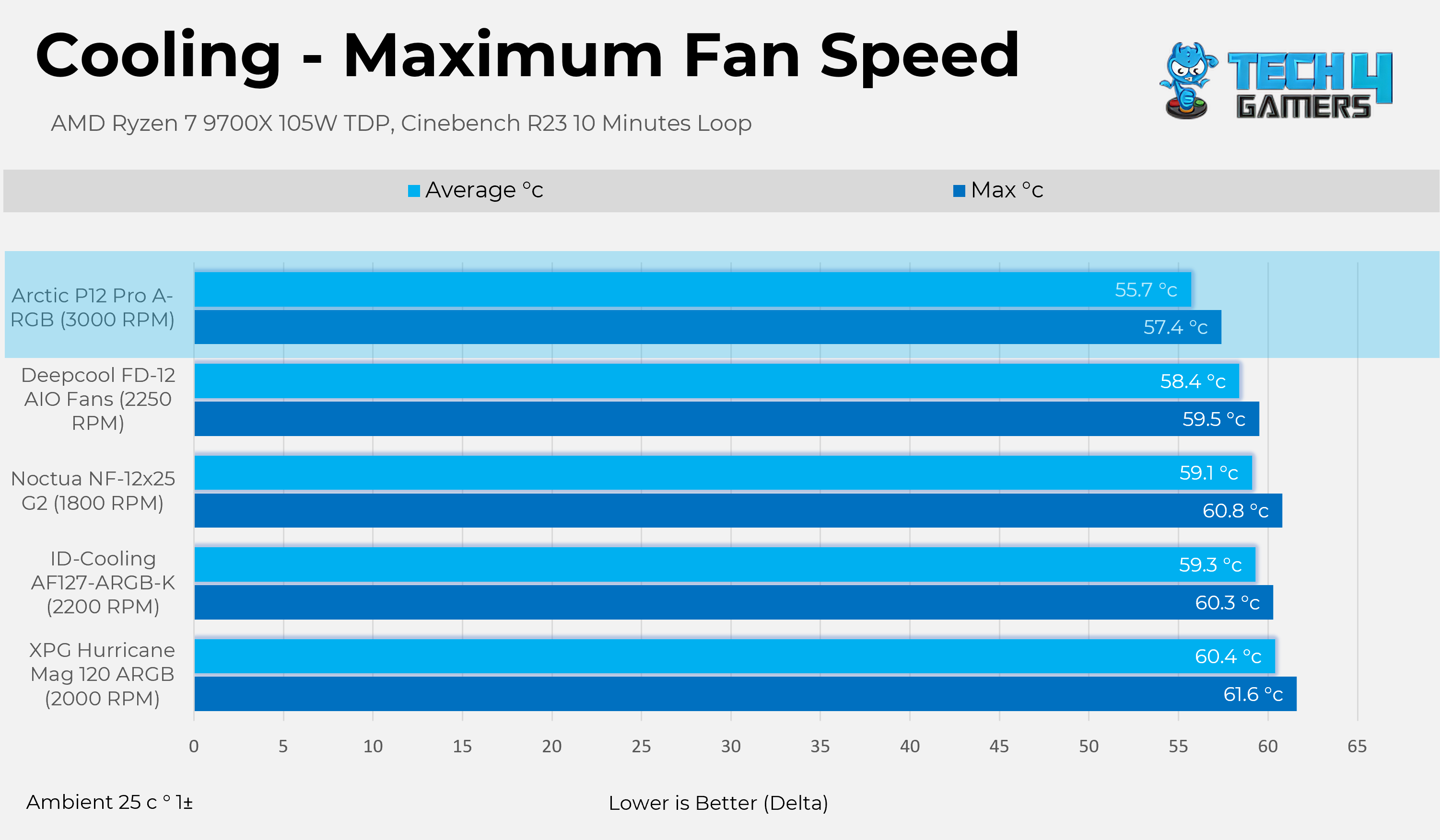 - In the thermal results, we have eliminated the influence of ambient temperatures on our data, and all results are presented as deltas relative to the ambient conditions. The tests were done in a controlled environment with a room temperature of 25°C.