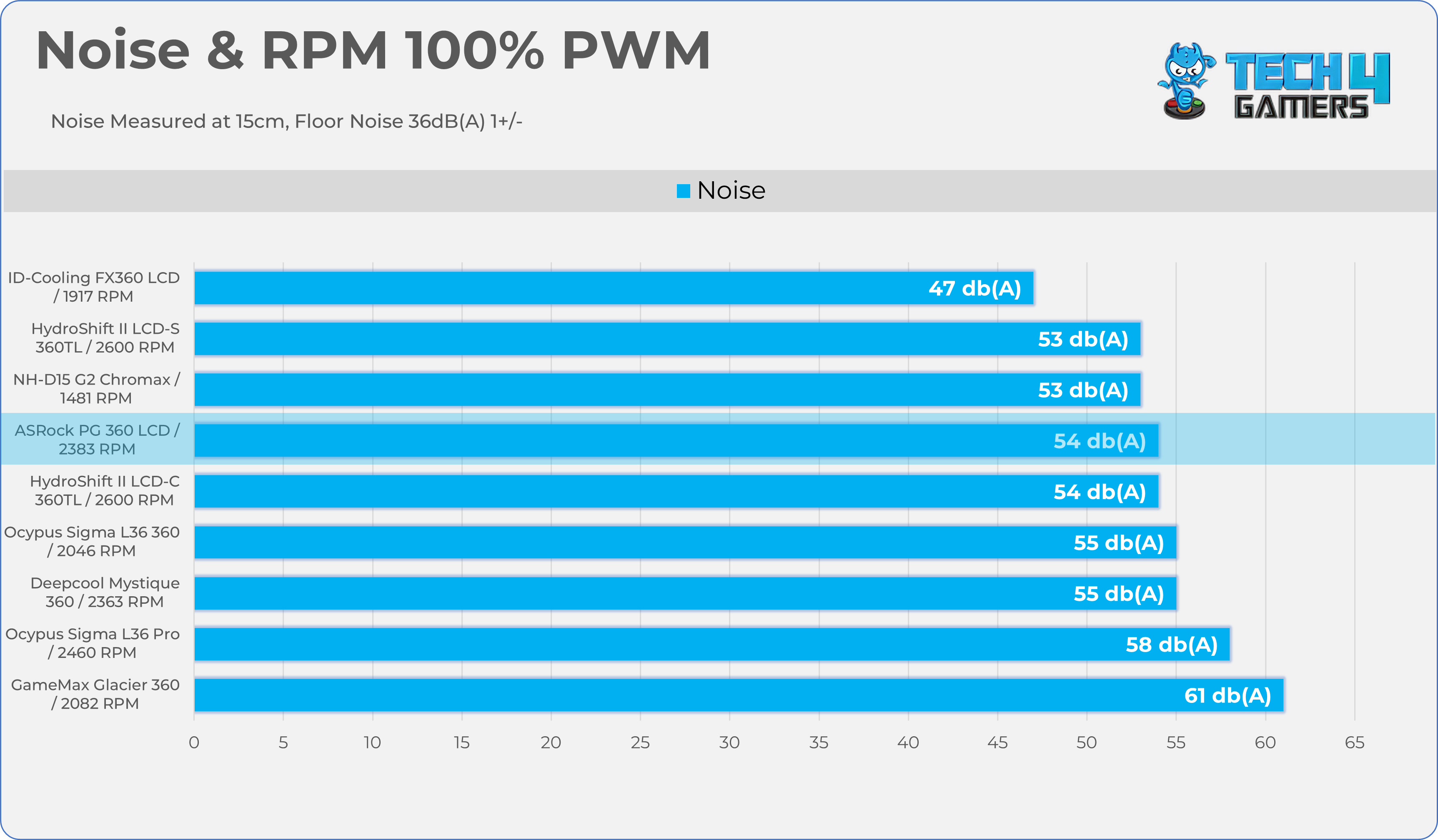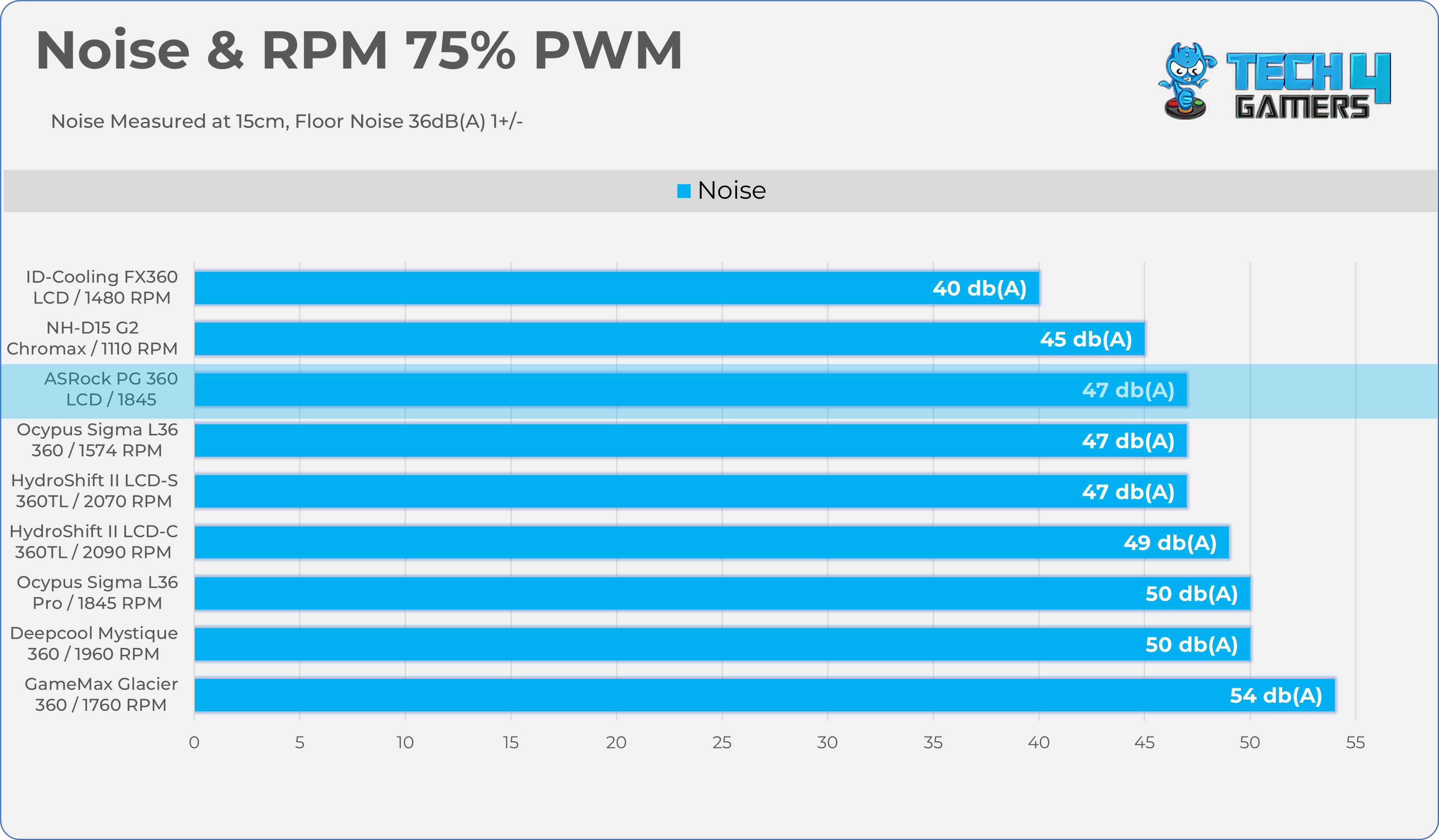 Let’s take a look at the Noise and RPM Readings. We conducted tests across four different PWM range levels.