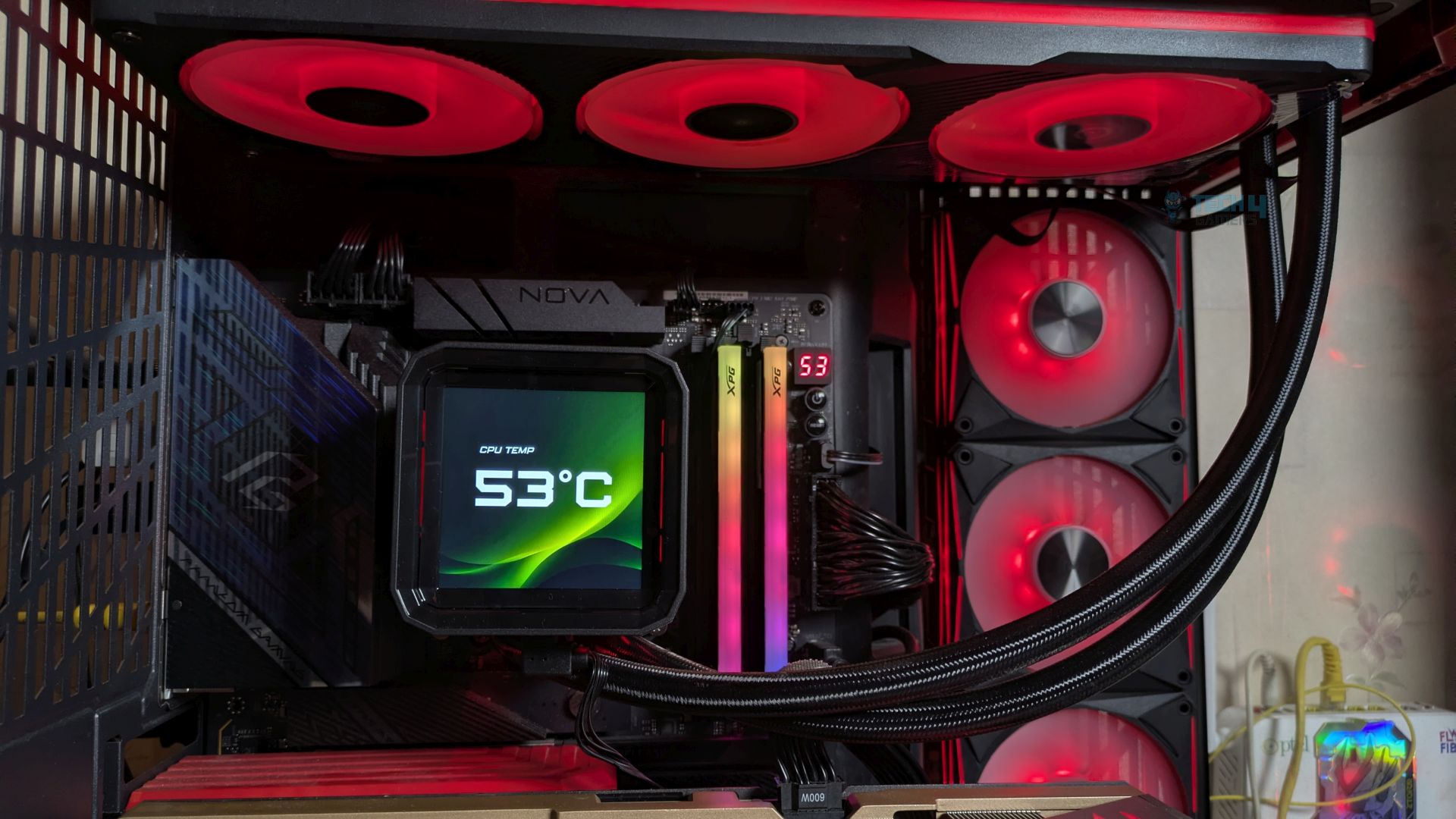 • The Coolers are tested in realistic conditions. We don’t use the open bench system; instead, we have installed the cooler in our HYTE Y70 case, mounted at the top. We ensure the airflow is adequate in the case and that the case fans are running at the fixed PWM speeds.