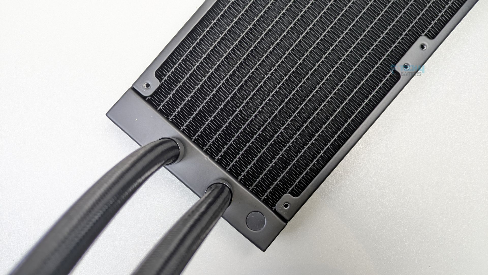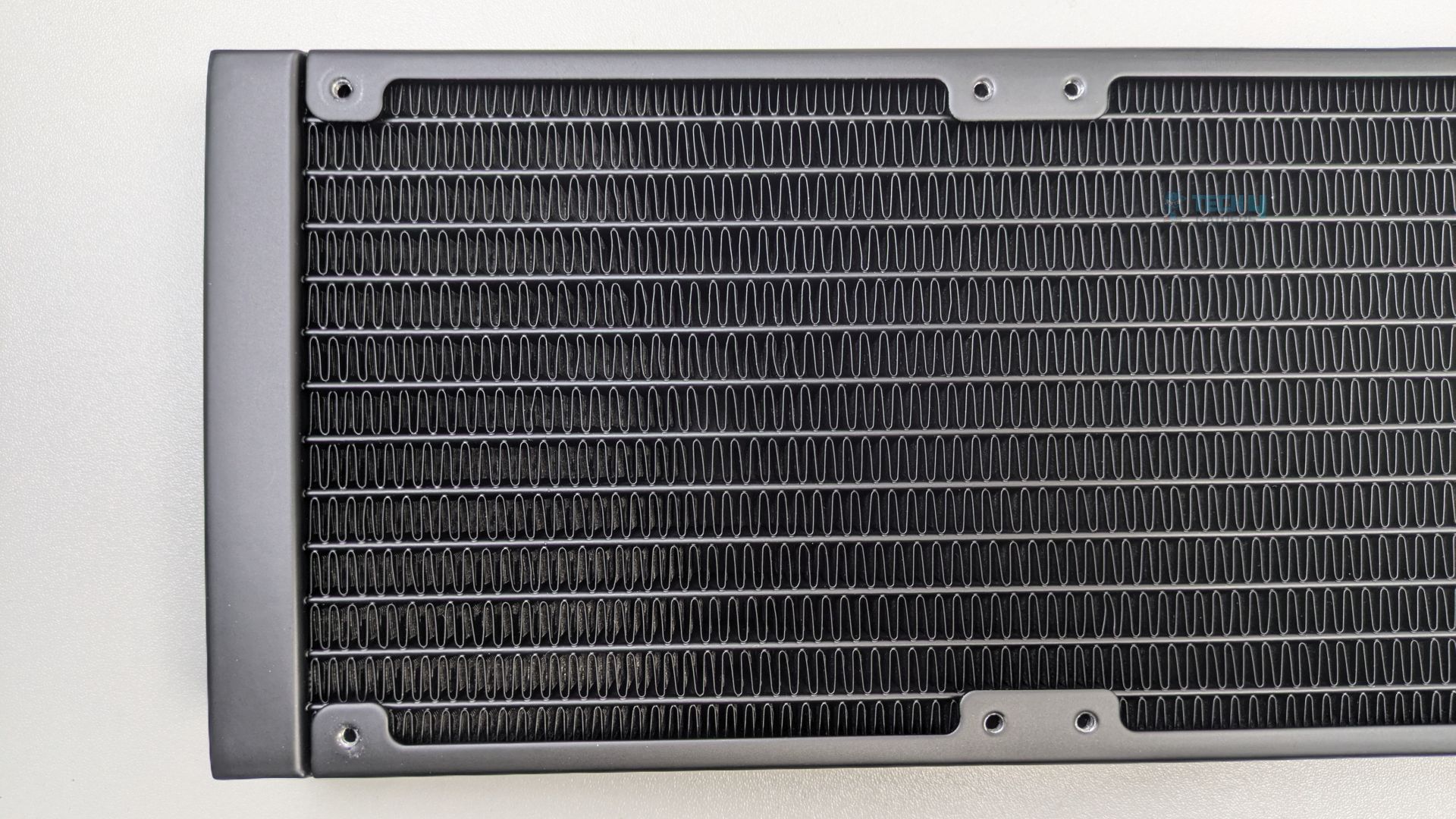 The radiator uses the high-density louvred fin design. The FPI (Fins Per Inch) is 20, and the radiator has 12 water-flow channels. At 32mm thick, it allows for higher coolant volume flow and greater heat dissipation potential. Such thick radiators do provide better performance when paired with high-performance static-pressure fans.