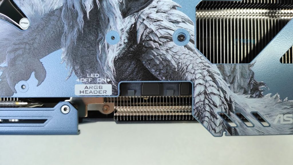Besides the GPU connectors, there is a switch to turn the ARGB LED on and off, and an external ARGB header for ARGB sync, eliminating the need for ASRock’s Software. However, the ARGB connectors seem to be in a bit of a weird position, and not to my liking.