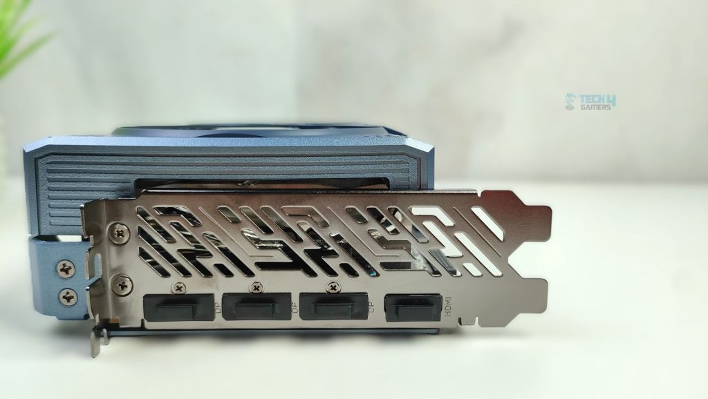 Lastly, we’re taking a look at the card’s I/O plate. It features a thick reinforced vented bracket. The GPU supports 3x DisplayPort 2.1a and 1x HDMI 2.1b connectors.