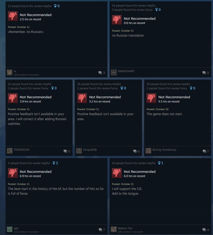 - Russian players are dropping negative reviews because there is no official Russian support in the game.
