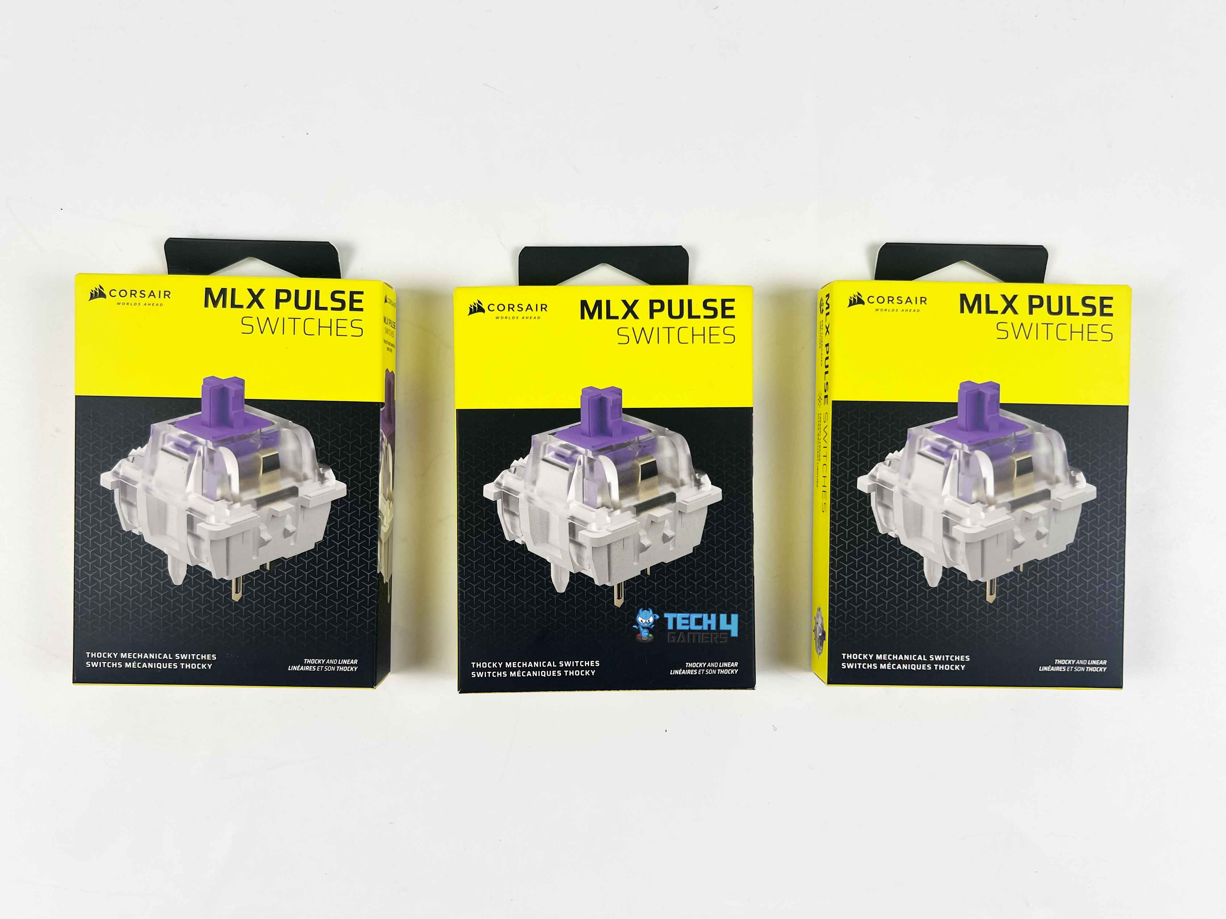 Corsair offers a few in-house switch options to choose from, including MLX Pulse Thocky, MLX Plasma Linear, MLX Quantum Speed, and MLX Fusion Tactile. For my build, I went with the MLX Pulse Thocky switches. They come in a clean purple housing and are tactile long-pole switches that give both a satisfying bump and a thocky sound with every keypress.