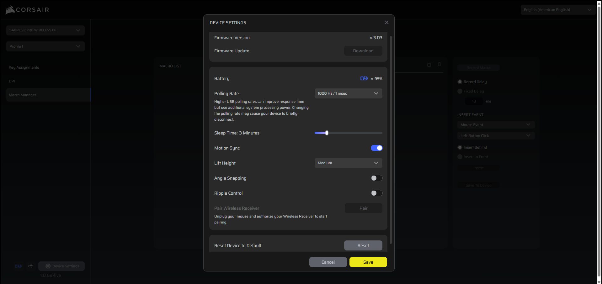 Corsair’s Web Hub is a browser-based software that’s used to customize the Corsair Sabre v2 Pro Carbon Fiber. It feels pretty straightforward once you get started. You can remap buttons, tweak DPI stages, and even assign macros. Beyond the basics, it provides access to more advanced sensor customization options. Lift-Off Distance can be adjusted so the mouse tracks exactly how you like when you pick it up.