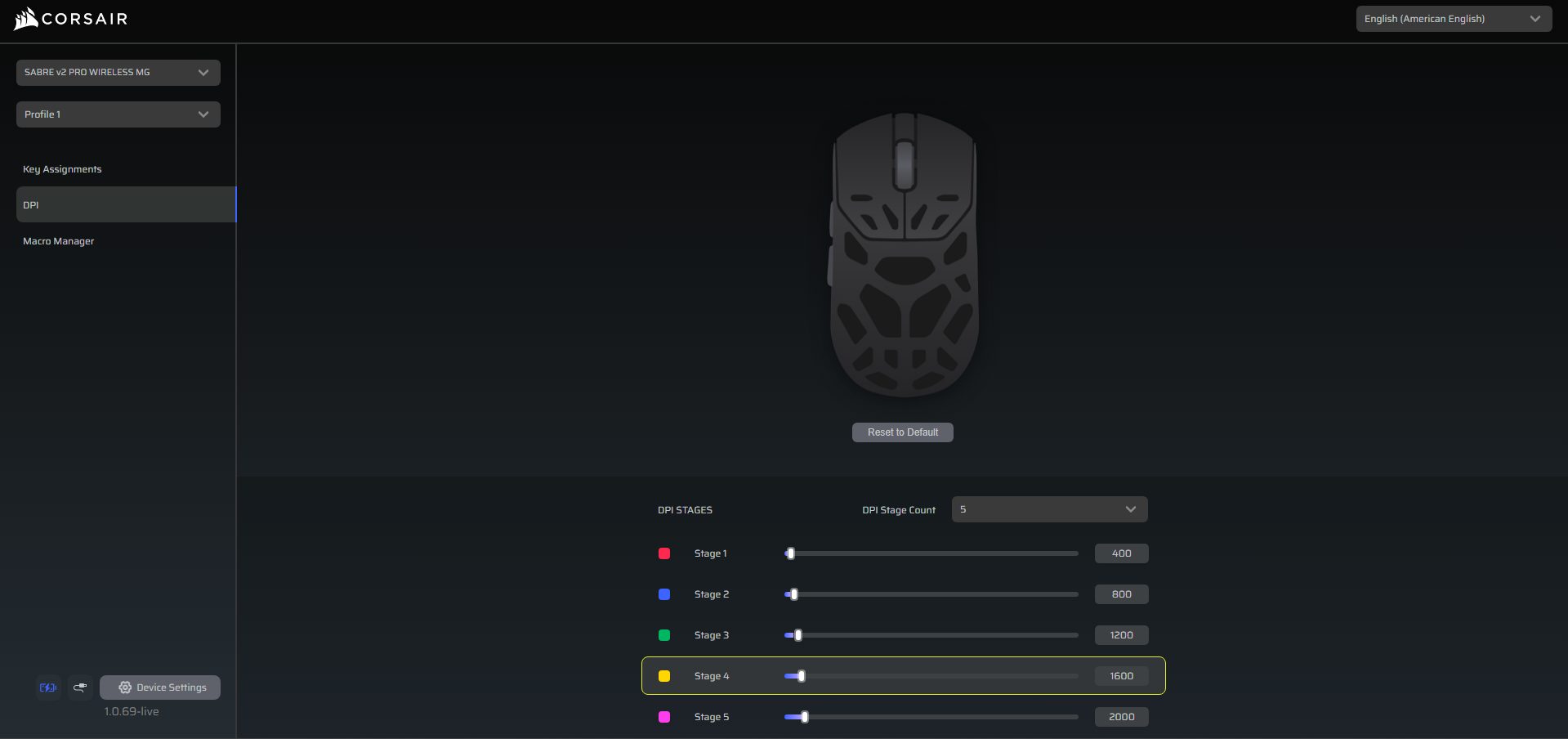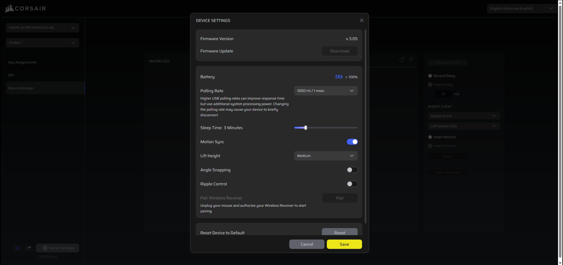 You can customize the Corsair Sabre V2 Pro Magnesium Alloy without installing heavy software. Corsair’s Web Hub is browser-based and straightforward. You just open it, authorize your mouse, and you can start adjusting settings. DPI stages, button assignments, macros, and more can be configured right there. The Web Hub also gives access to more advanced features for fine-tuning its sensor, such as motion sync, lift-off distance, angle snapping, and ripple control. Setting up profiles is simple.