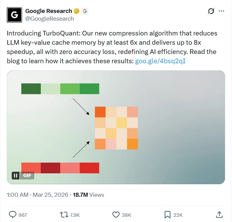 The decrease in costs is also largely attributed to Google’s new TurboQuant compression algorithm. The KV cache compression reduces memory requirements in AI workloads by up to 6x.