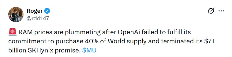 OpenAI not buying 40% of the world’s DRAM wafer supply from Samsung and SK Hynix could have also kick-started the price drop in RAM prices. These deals were only a letter of intent, but the world treating them as binding purchase orders brought the RAM apocalypse.