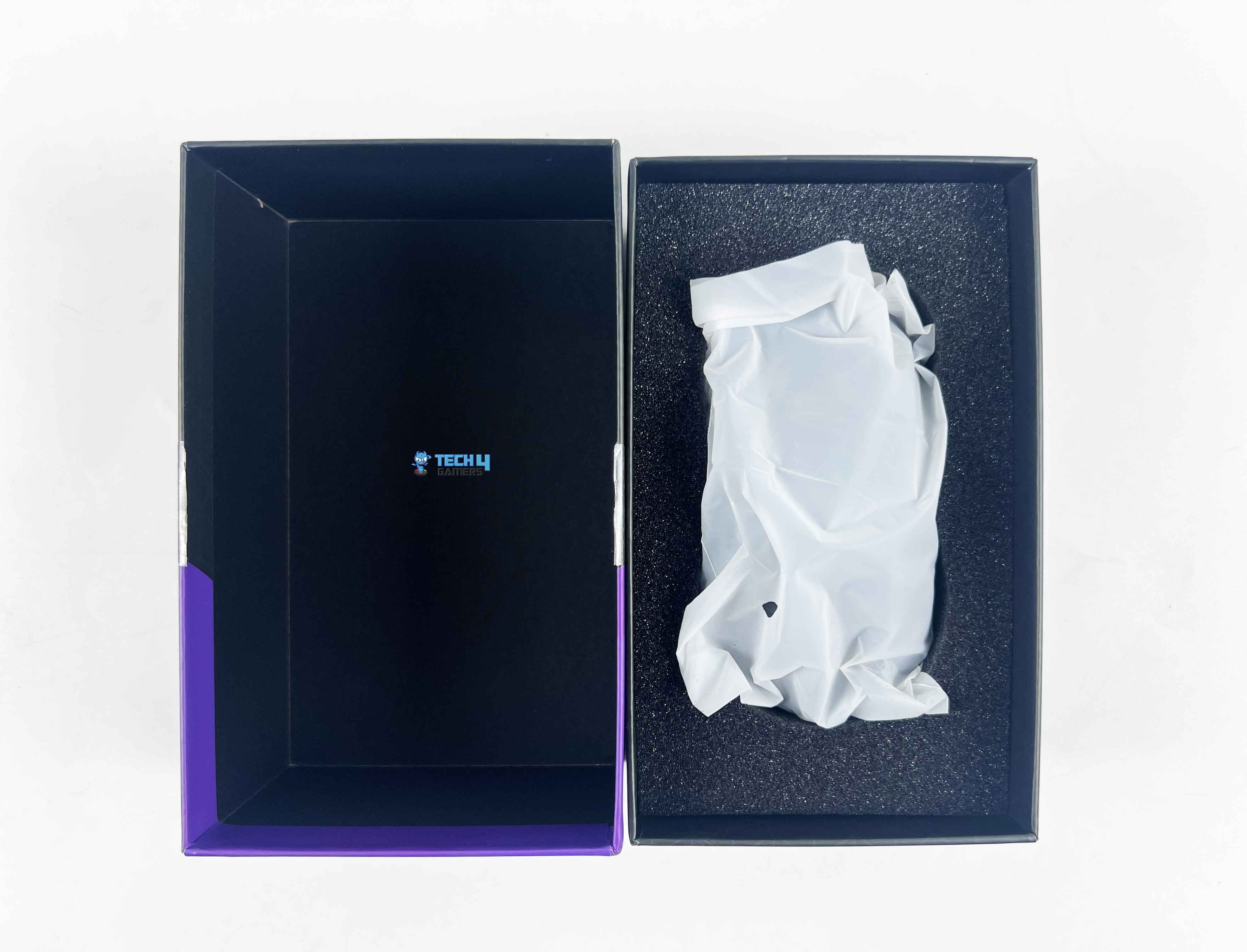 Open the box and you’ll find the CarbonX sitting right in the middle, wrapped up in plastic and resting on a foam layer. The cutout fits it perfectly, keeping it safe during shipping. Once you lift that out, there’s a small white box underneath, where all the accessories are tucked in. Here’s everything you get inside: