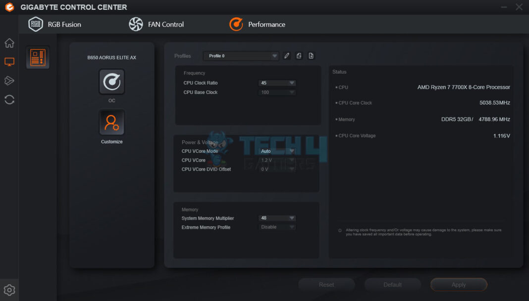 The B650 Aorus Elite allows us to bypass the PMIC voltage lock through the BIOS.