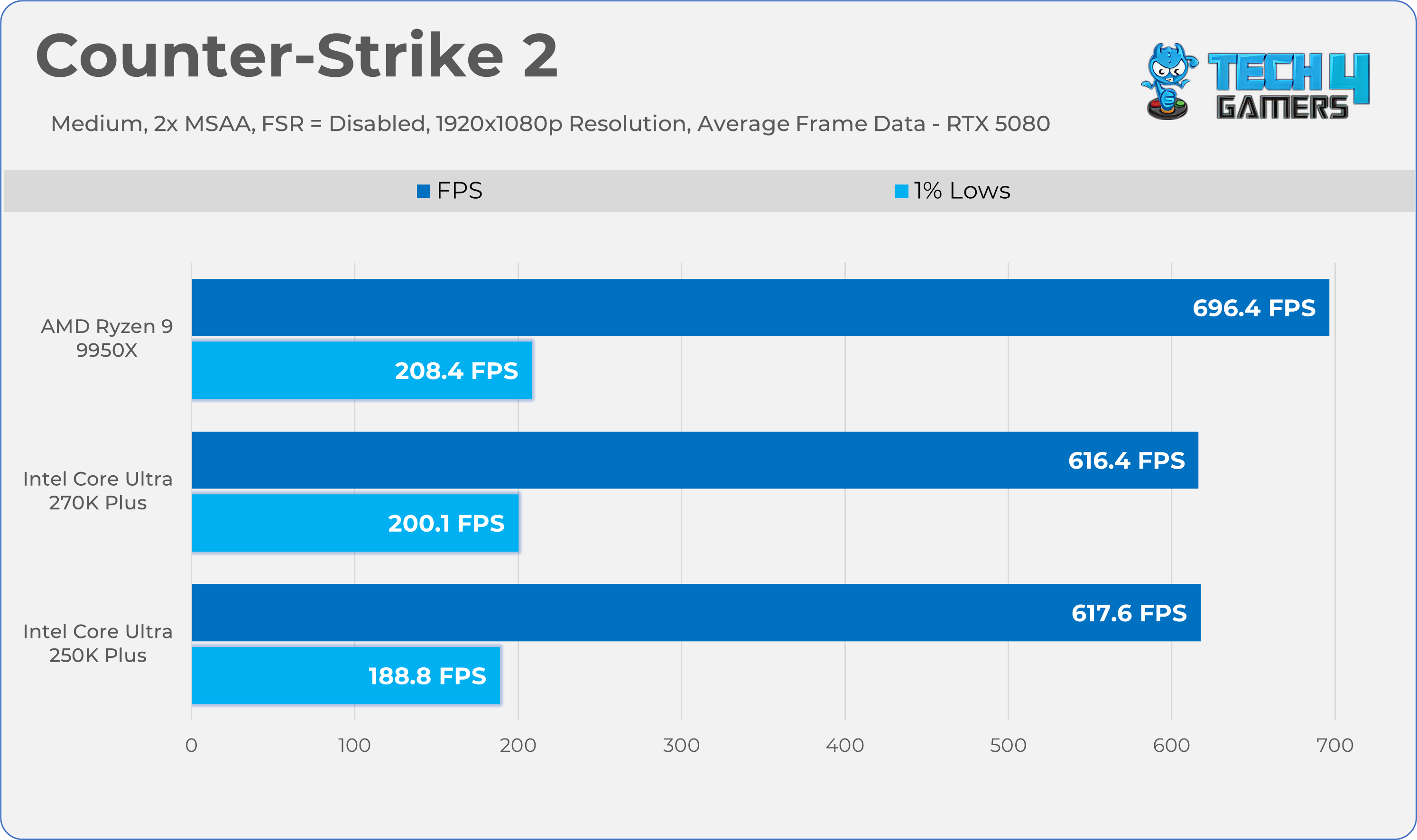 To reveal true CPU gaming performance, testing must artificially induce a CPU bottleneck. We’ll test the games exclusively at 1920x1080p resolution with medium or high settings. Testing at 1440p. or 4K shifts the bottleneck to the GPU, flattening the data and hiding the CPU performance delta. We’ll also be measuring the average FPS and 1% lows.