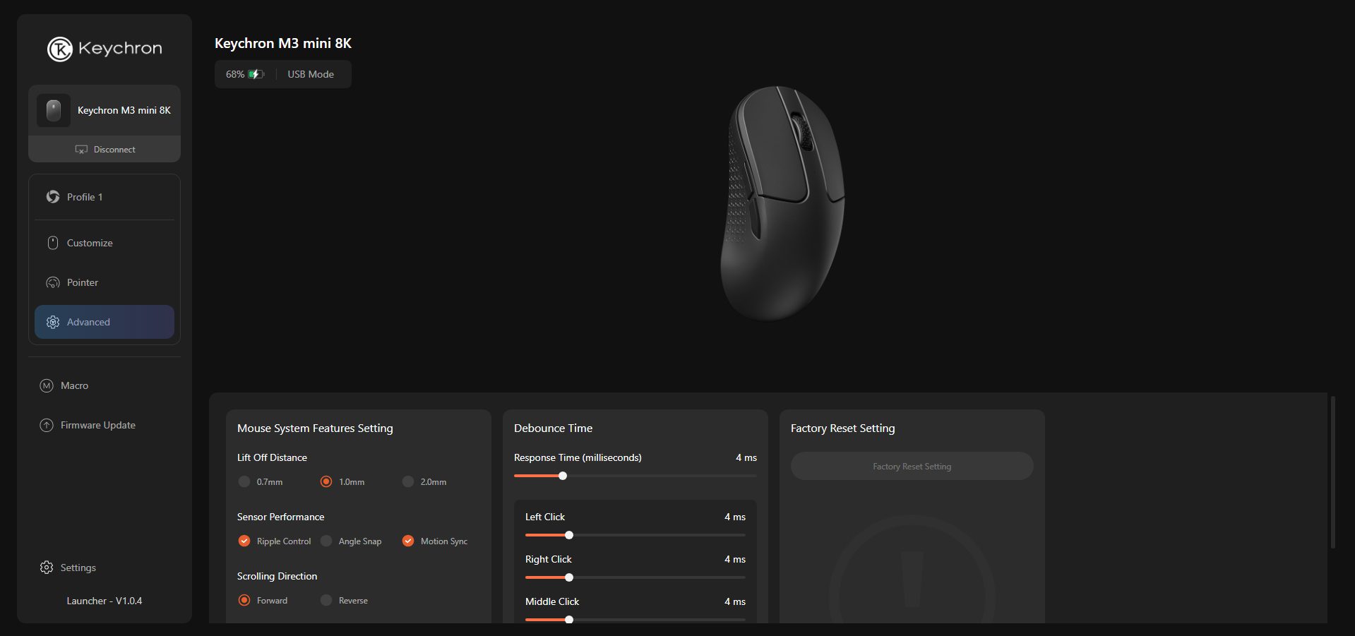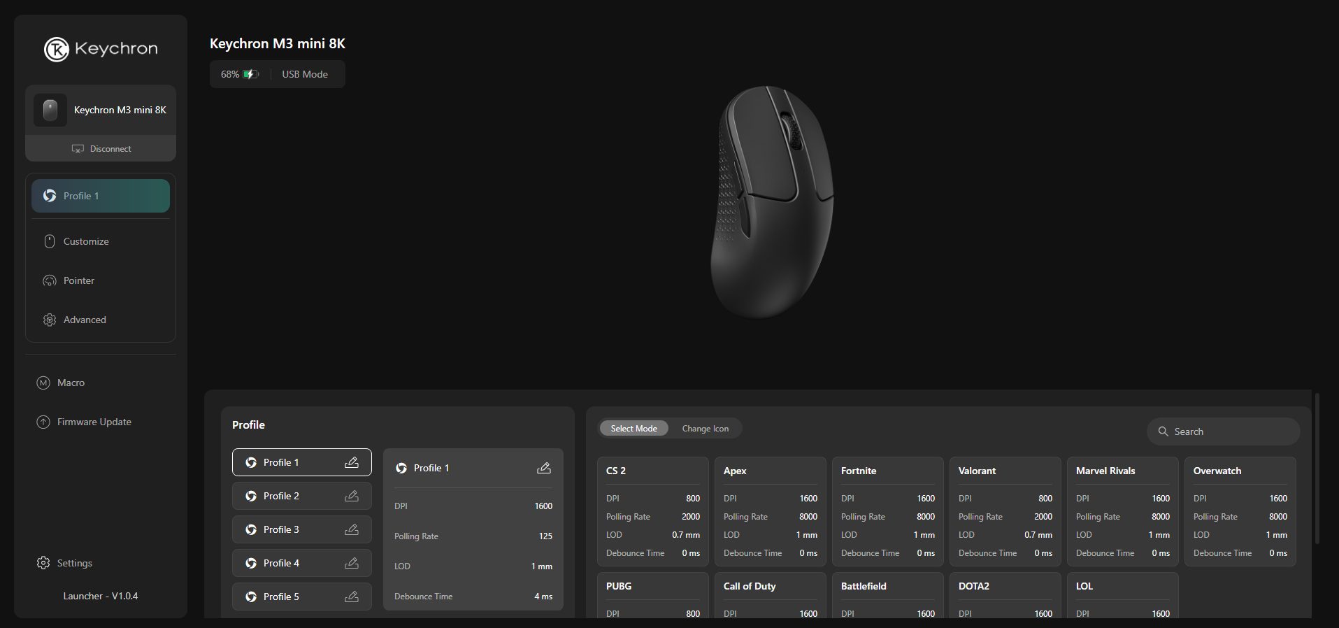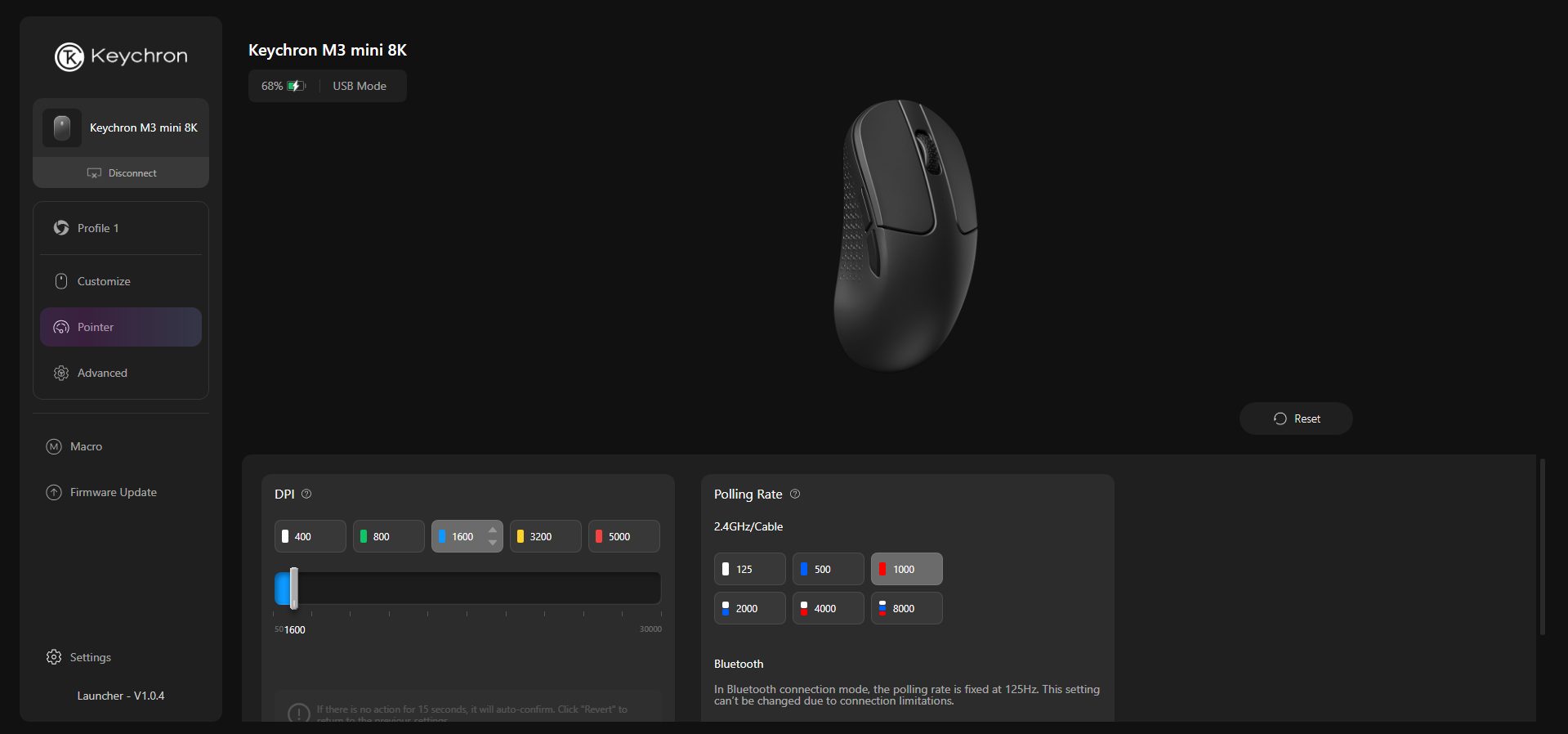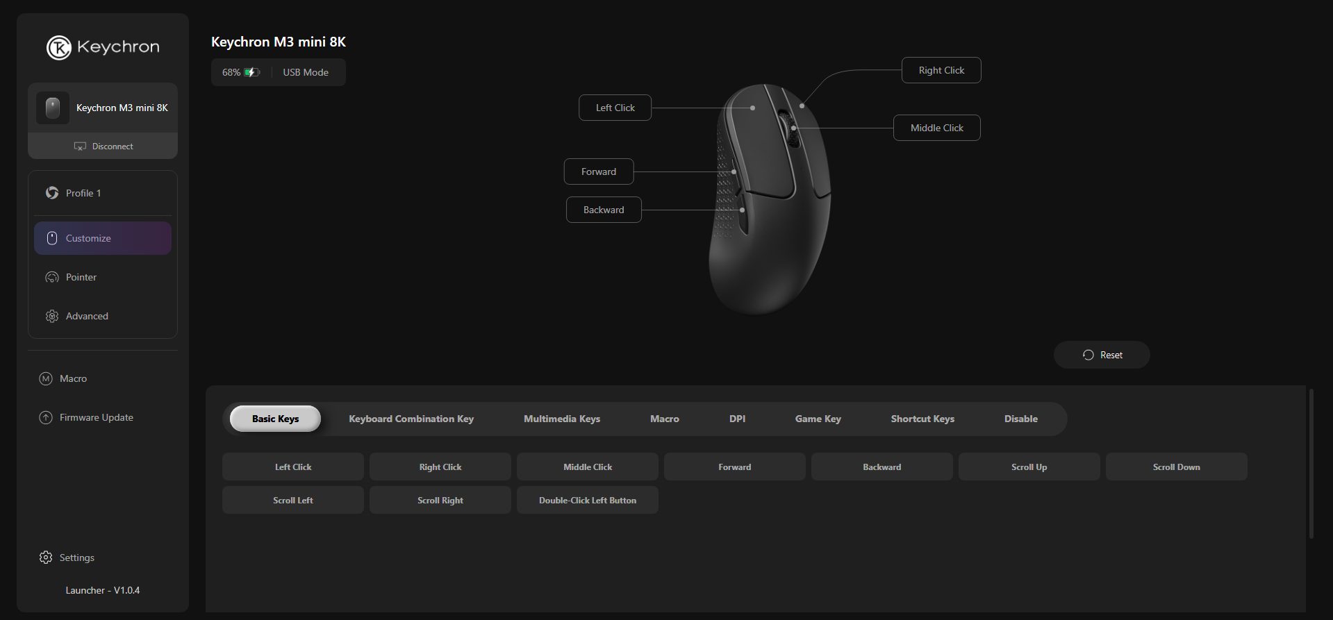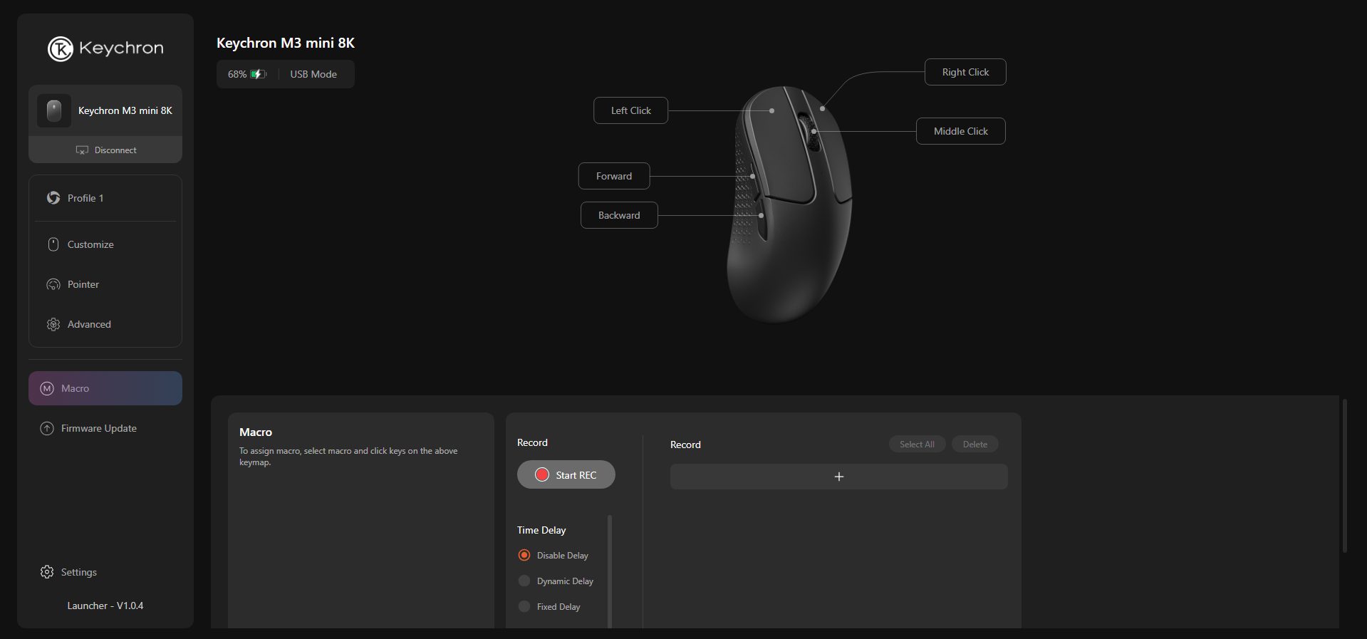Instead of forcing you to download bloated software, Keychron has opted for a web-based configurator called Keychron Launcher. It’s an online software that opens in your browser, allowing you to customize all the necessary settings. In there, you can remap buttons, add shortcuts, set up your own macros, and even adjust settings like LOD, polling rate, or DPI.
