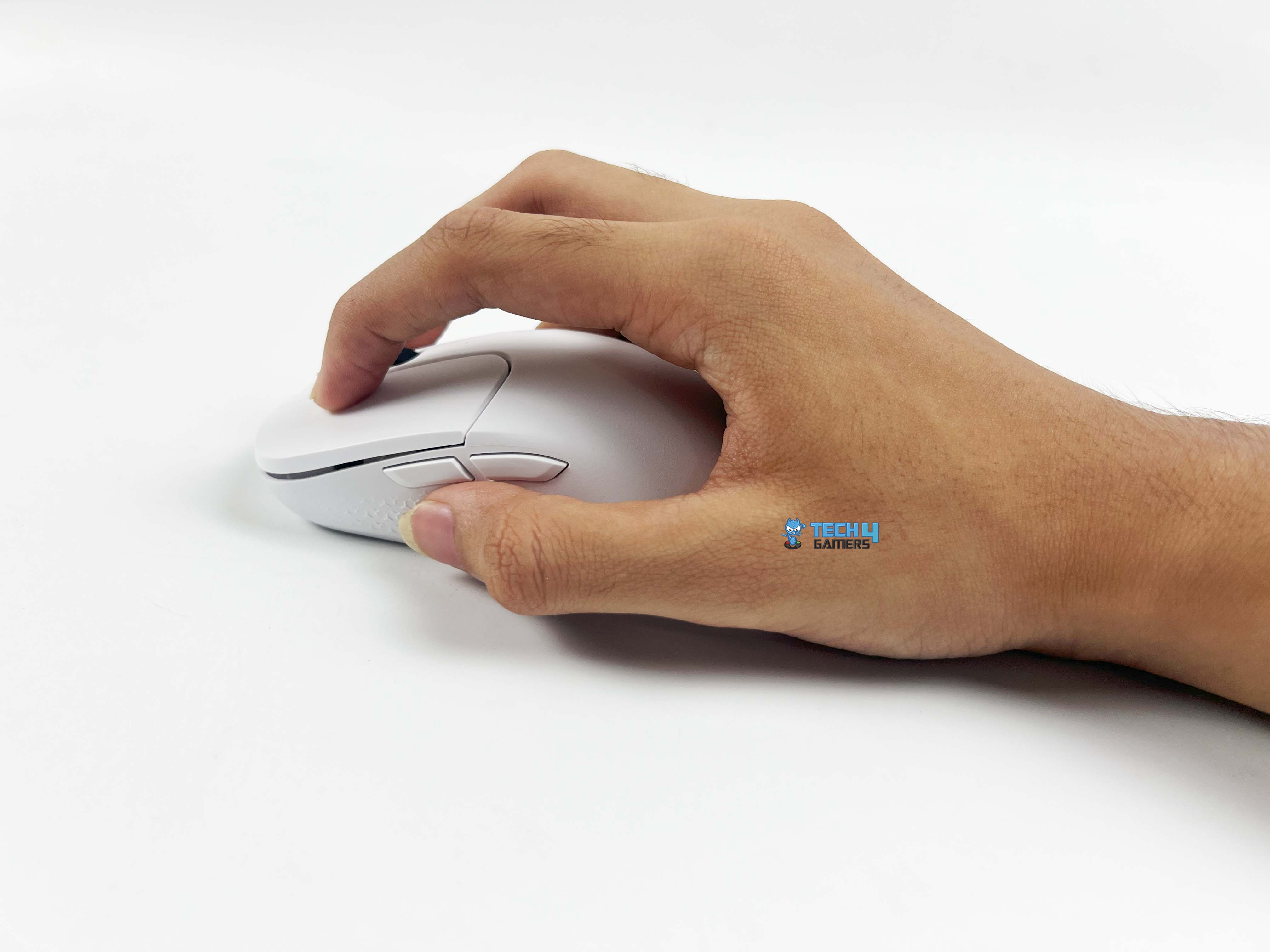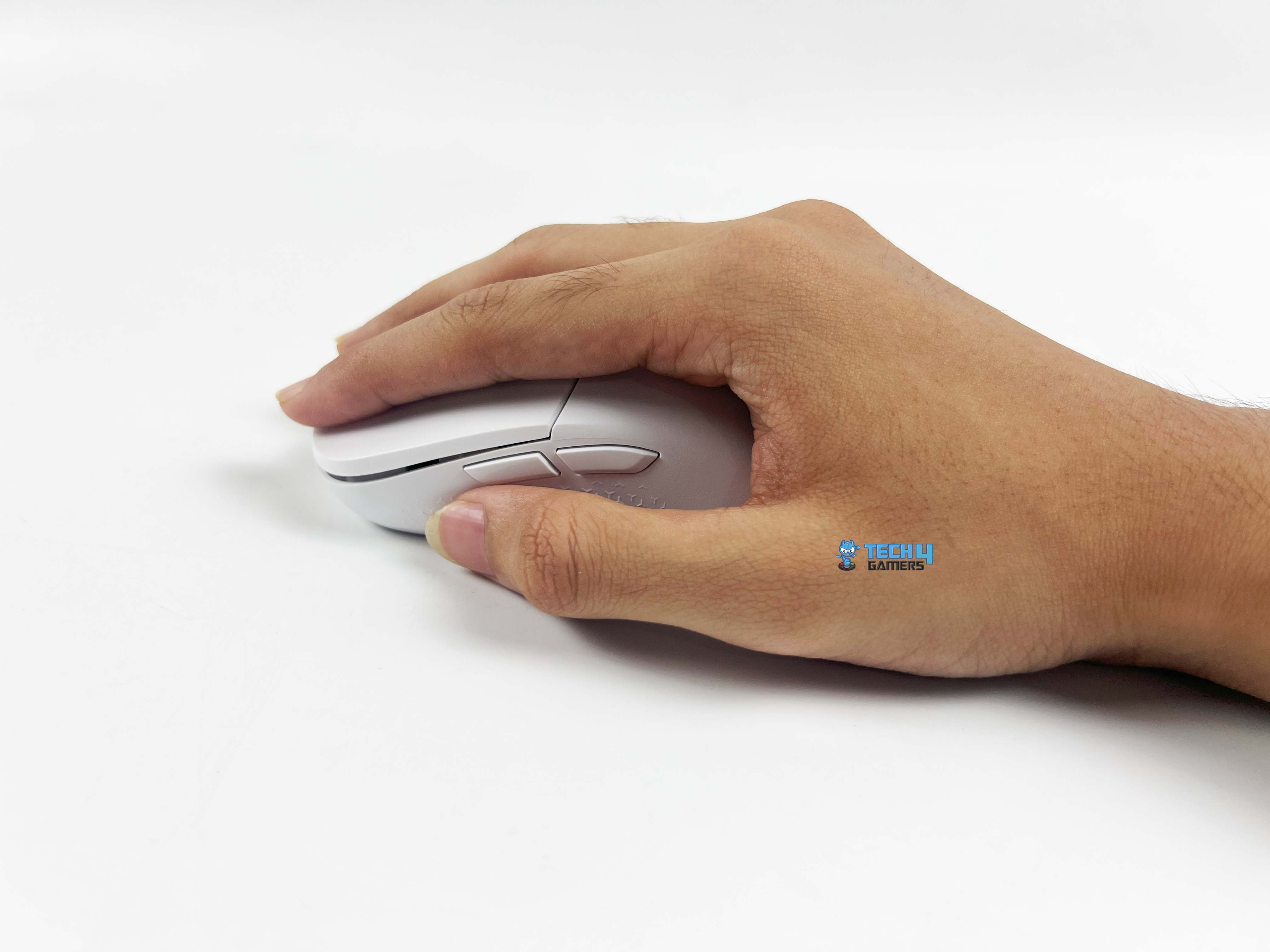 Although it feels really nimble for smaller to medium hands, where flicks and quick movements feel natural, and the curves help it from feeling flat or uncomfortable after a while. If you’re a palm-grip user, the taller hump fills your hand nicely. Lastly, resting your whole hand on it works pretty well, although users with larger hands might wish it had a bit more length.