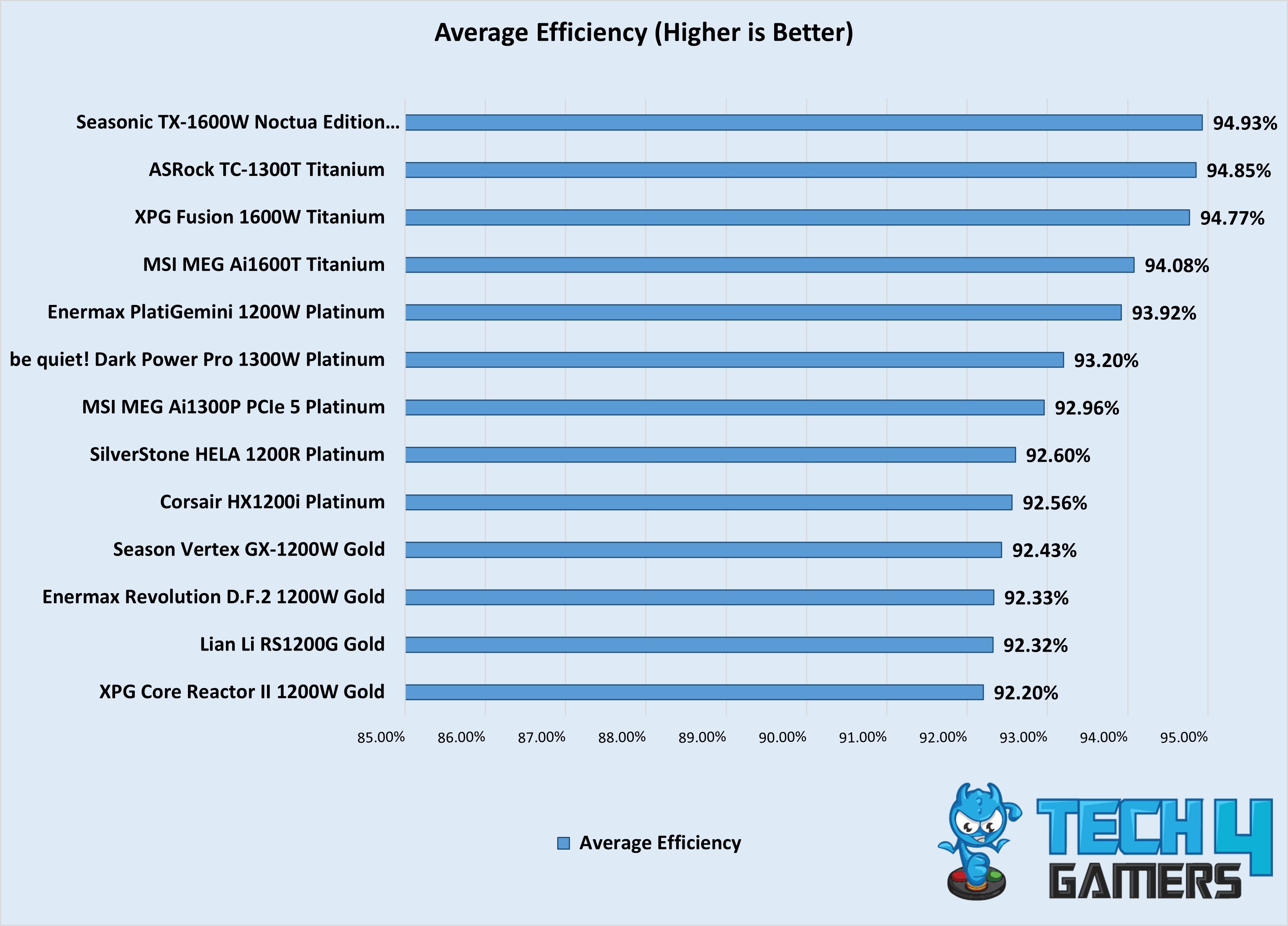Avg Efficiency Test Results - 1200W PSUs (Jan 2026)