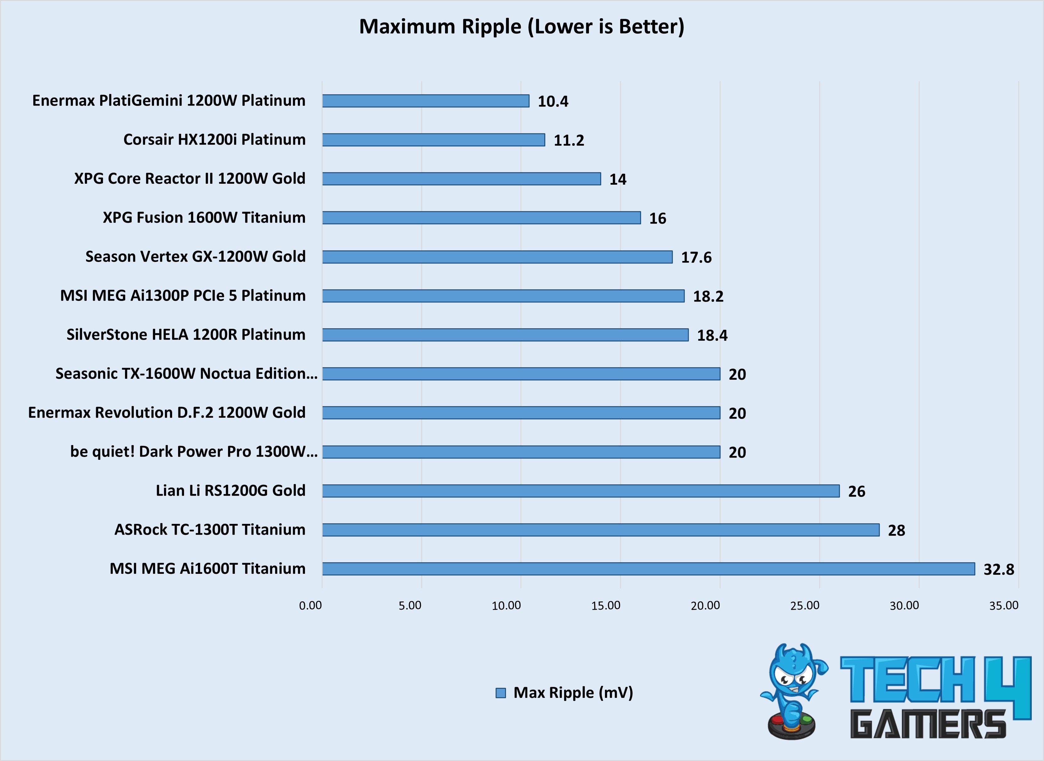 Max Ripple Test Results - 1200W PSUs (Jan 2026)