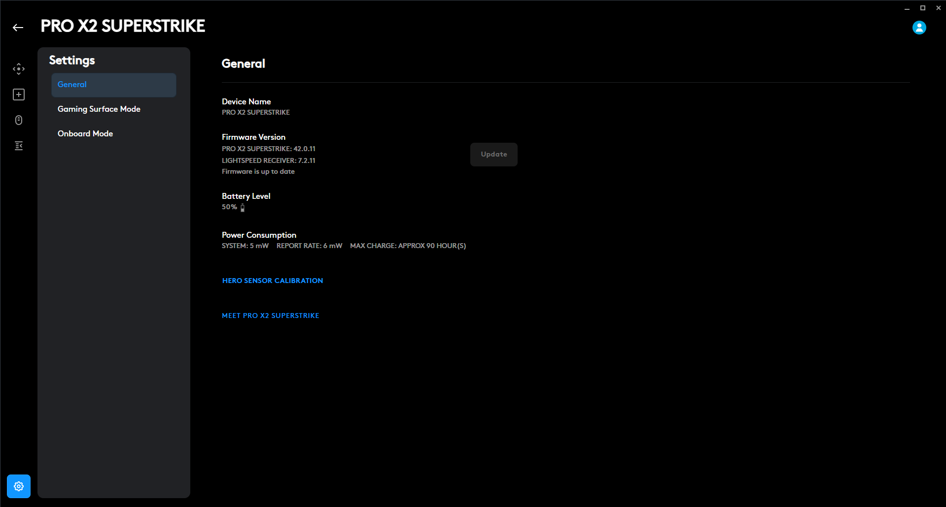Logitech claims up to 90 hours of battery life on the Logitech Pro X2 Superstrike, and that seems believable based on my experience. Charging is done through the USB-A-to-USB-C cable. While it’s charging, the LED pulses green. If the battery drops to around 15%, the LED flashes red. The mouse also supports Logitech’s Powerplay system if you don’t want to worry about charging at all, though that’s sold separately. After a full week of mixed usage, the battery stayed consistently reliable, and I only had to charge once towards the end.