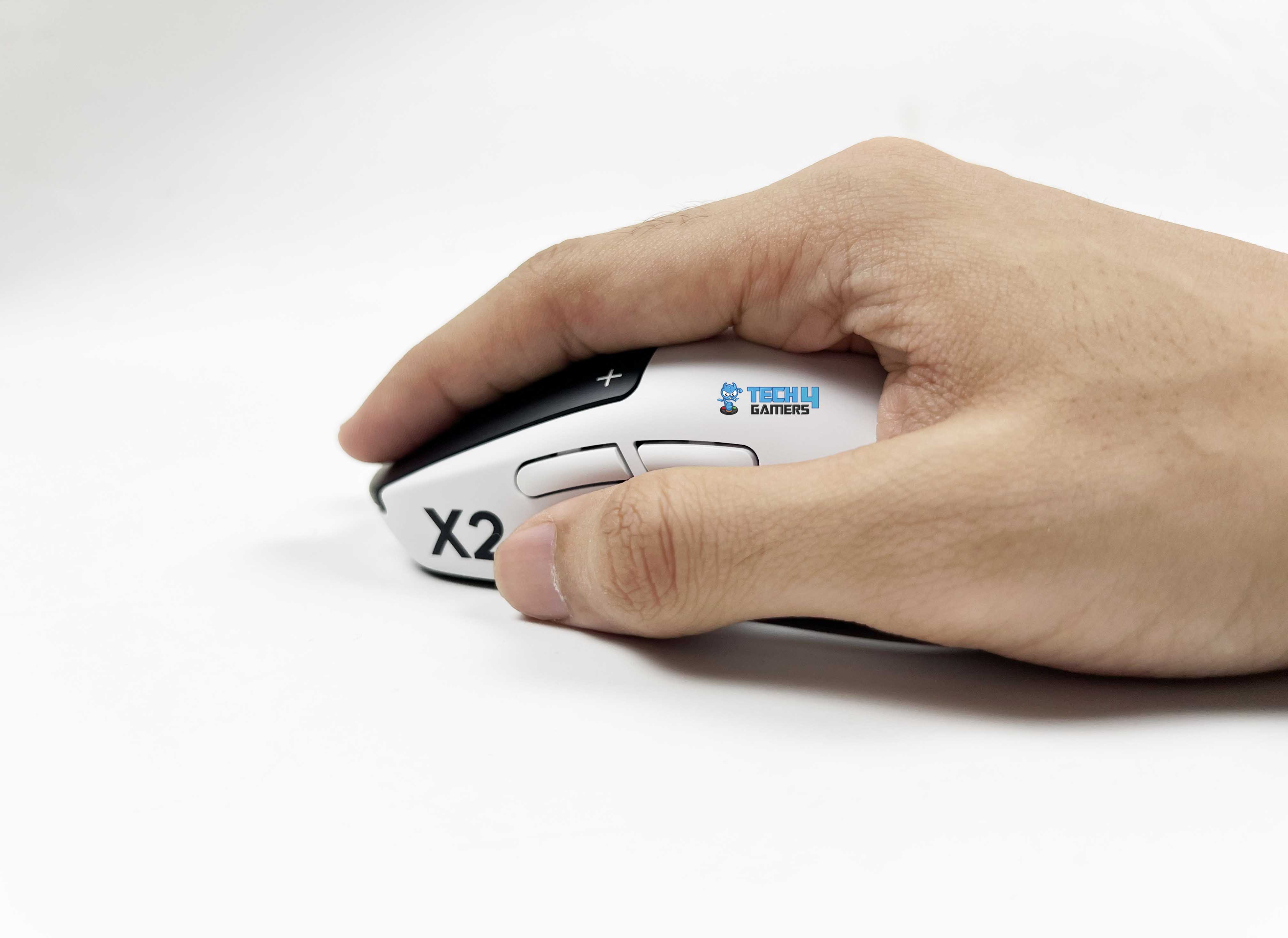 The first thing I usually do with a lightweight mouse is squeeze it. Not aggressively, but just enough to see if anything flexes. With the Logitech Pro X2 Superstrike, the shell barely moves. I pressed along the sides near the thumb area, back, and the front corners. There was no creaking and no soft spots. It feels tighter than you’d expect from a lightweight mouse like this. The top shell has a solid, almost dense feel when you tap it, as there’s no hollow echo.