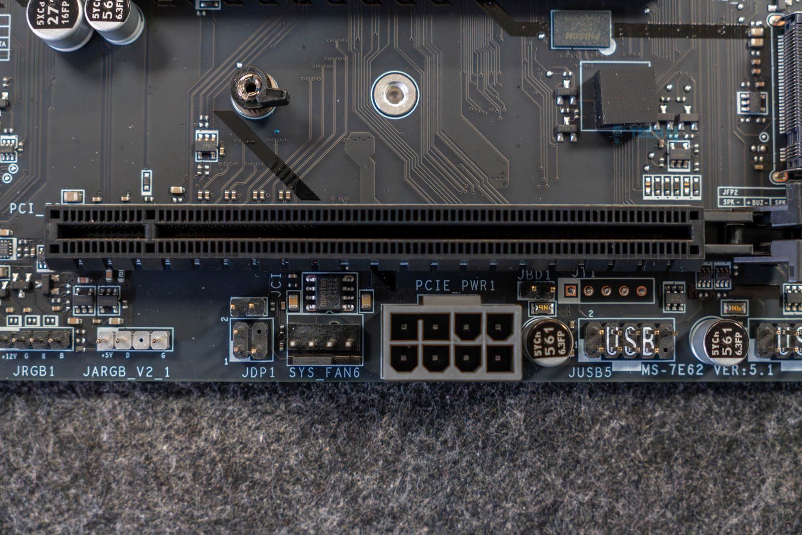 Expansion slots and USB ports remain the same, with the motherboard providing 1x PCIe Gen 5 x16 slot. Meanwhile, the PCI_E2 Gen PCIe 3.0 supports up to x1 lanes, and the PCI_E3 Gen PCIe 4.0 supports up to x4 lanes. USB connectivity could have been better, but we do see a 20Gbps Type-C port and 5x 10Gbps ones.
