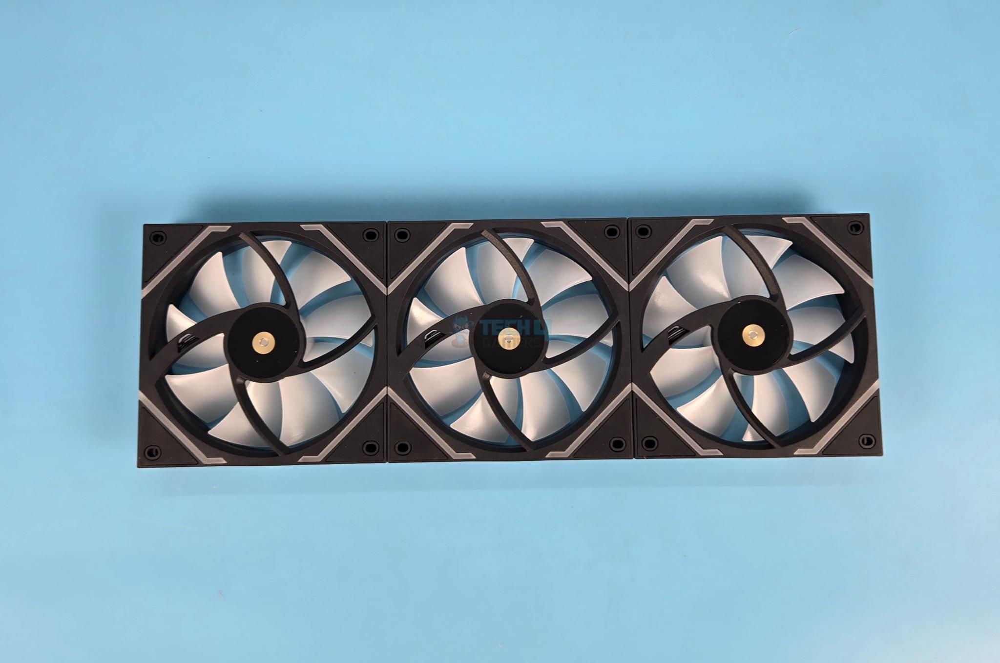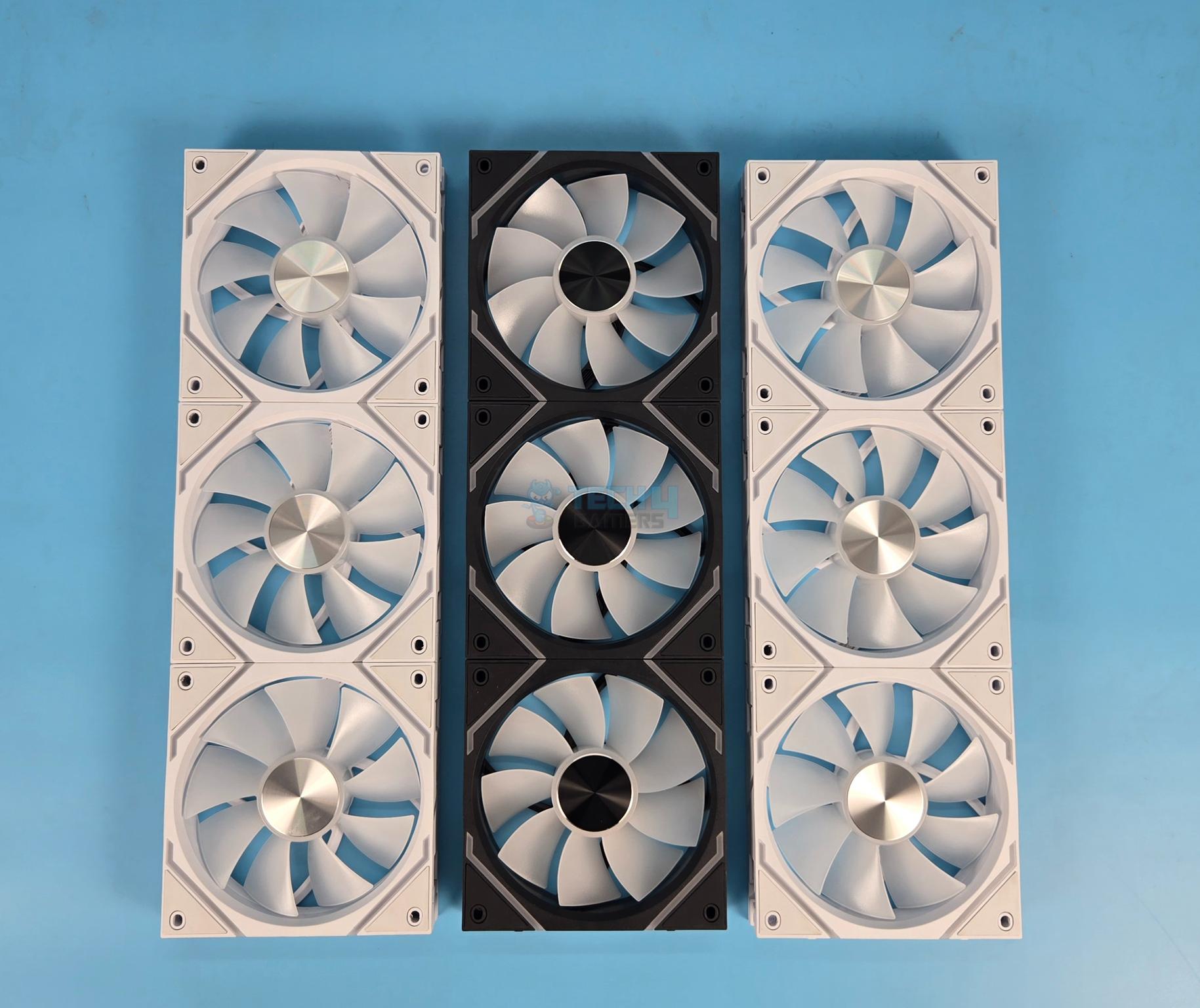 The above pictures show the integrated fan assembly using magnetic and decorative blocks. The white fans are EZ120 ARGB fans with regular fan blade assembly.