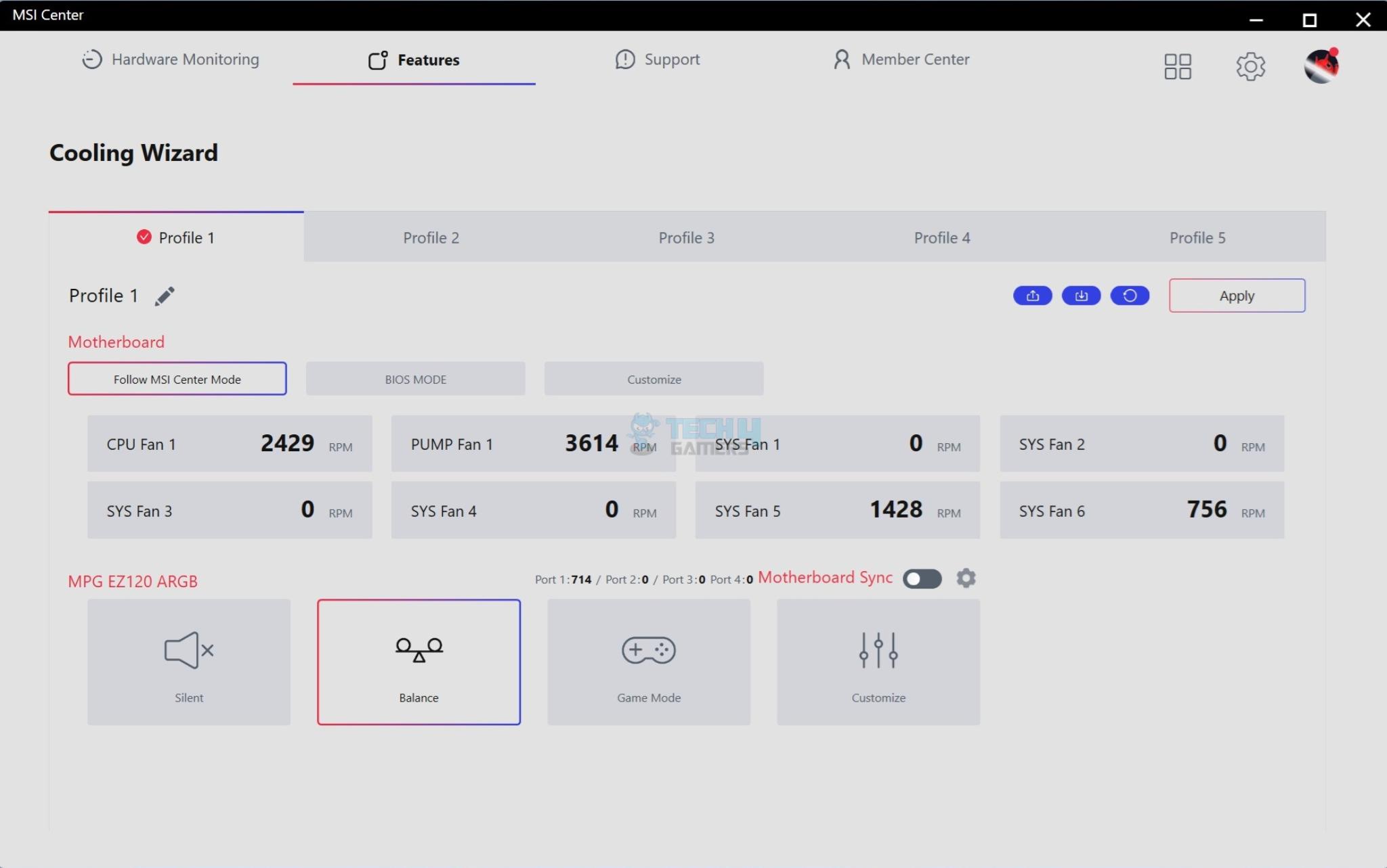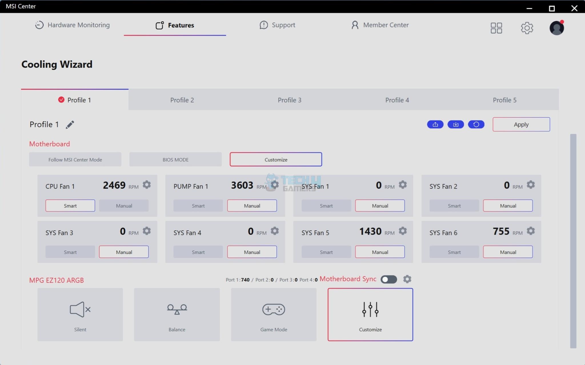 Cooling Wizard allows you to control and customize the fans’ speed. It also has pre-built profiles that you can use at one click convenience.