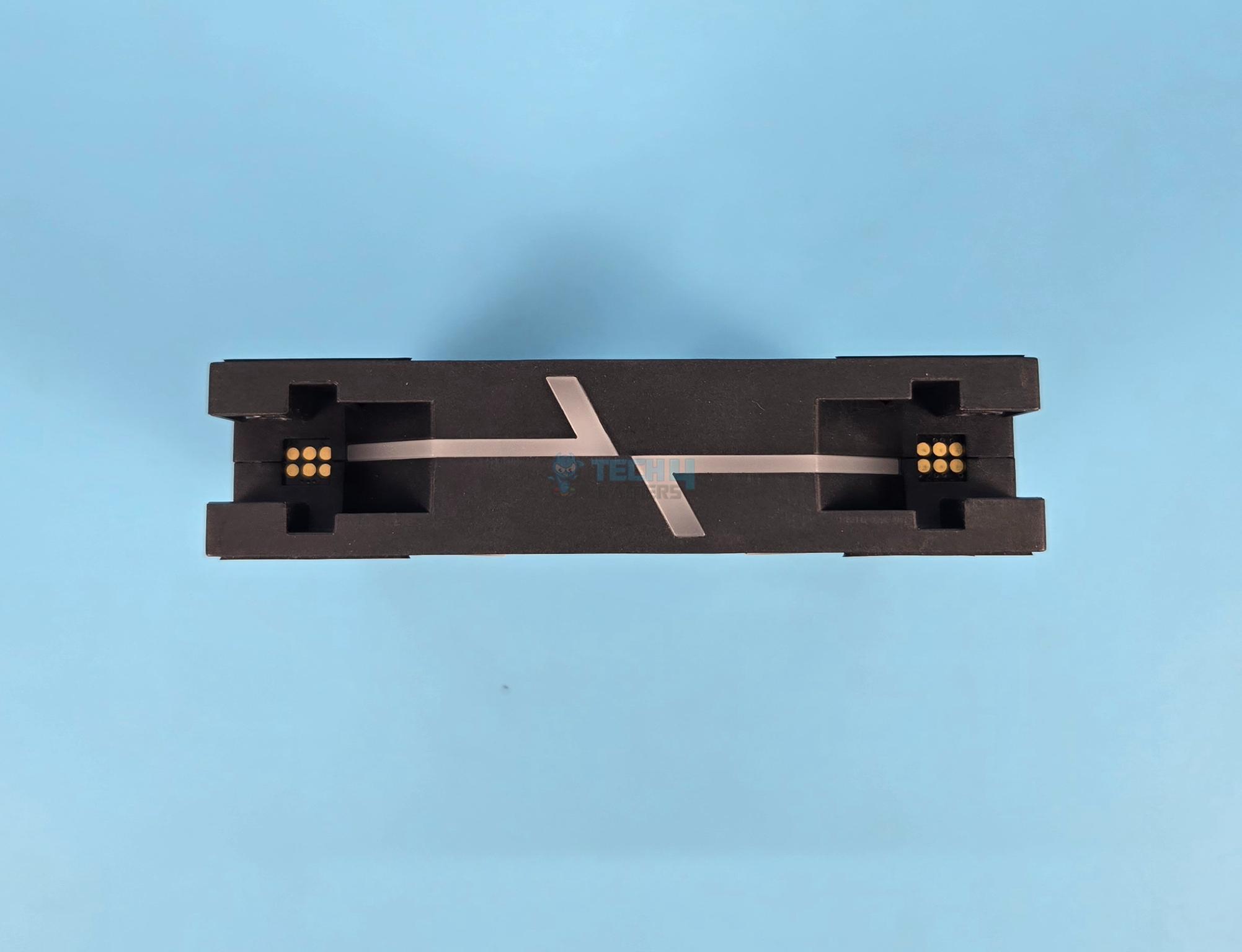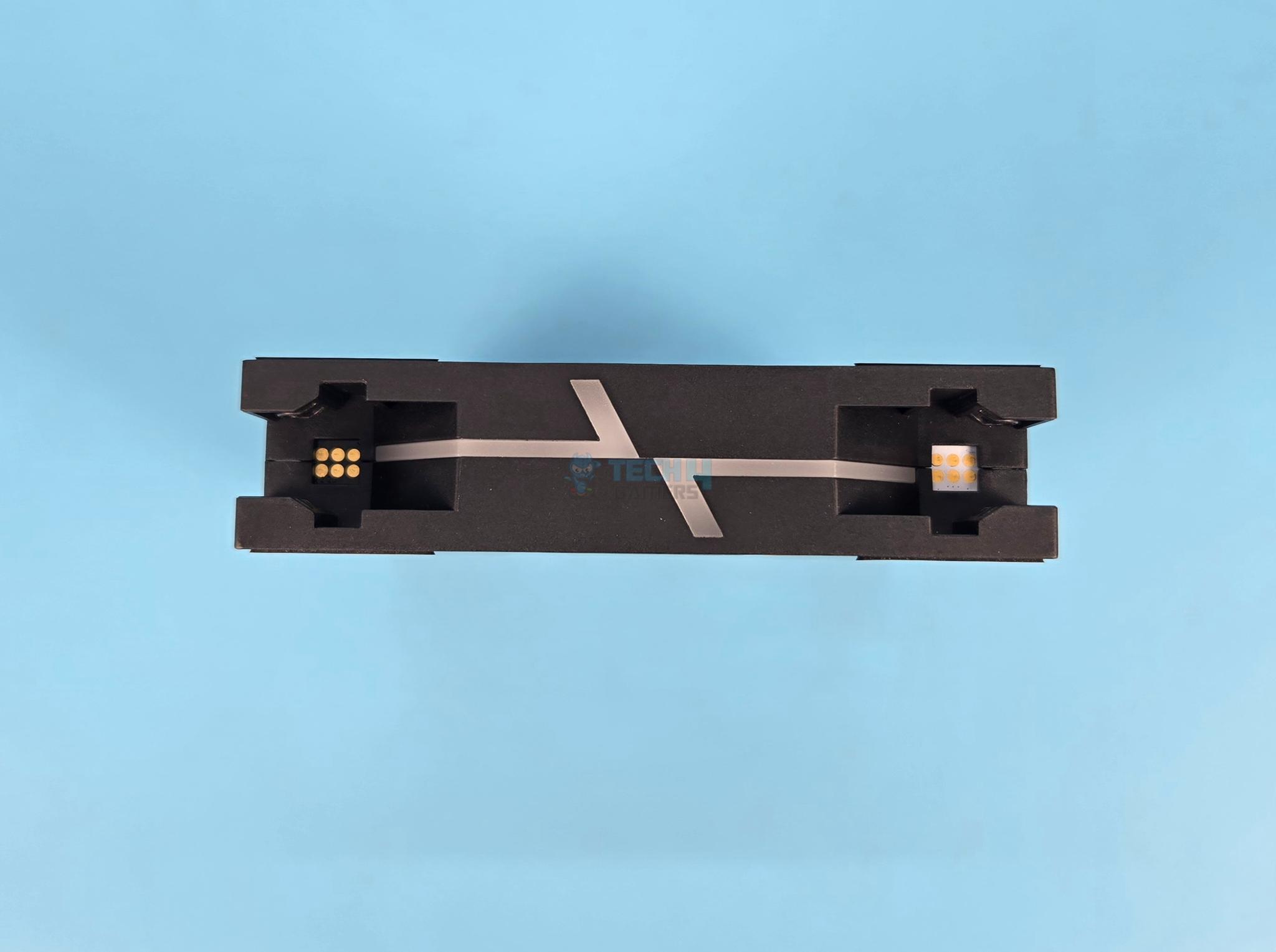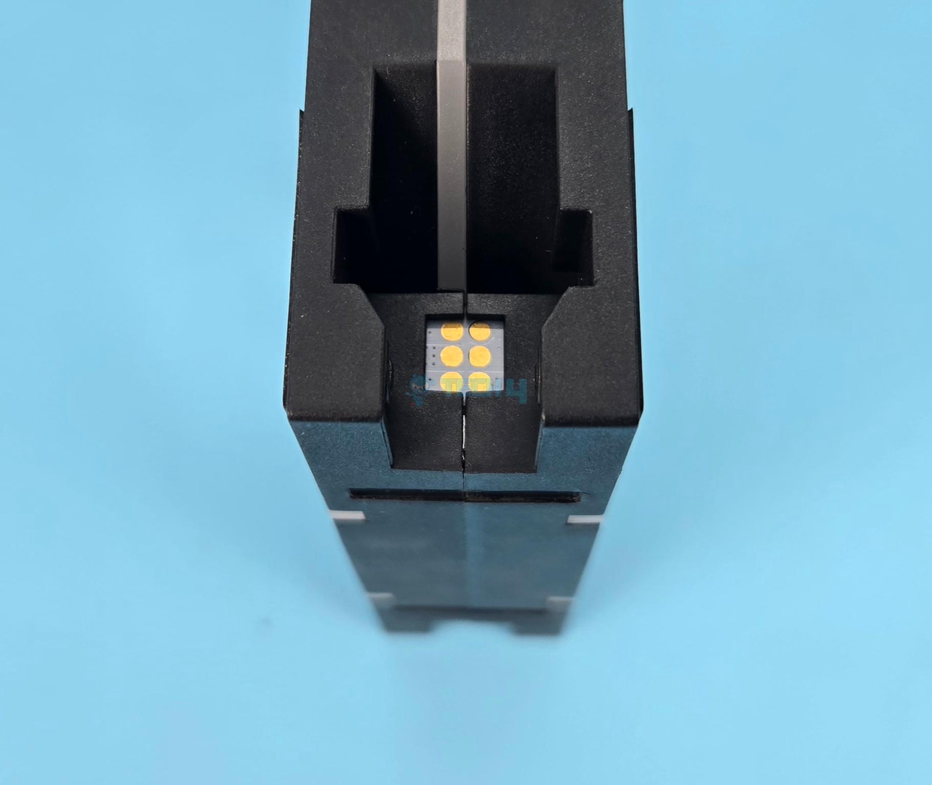 The side of the frame also features a diffuser with backlighting, hence providing a 360-degree visual effect. Two sides of the frame have contact pads. One side has two similar black 6-pin pads, whereas one side has one black and one white pad.