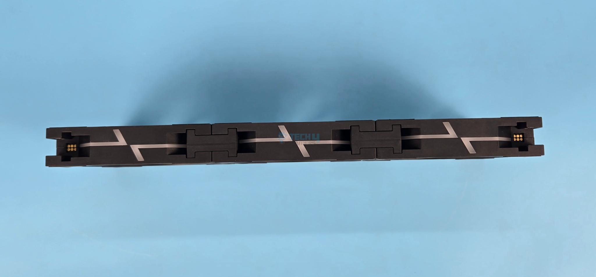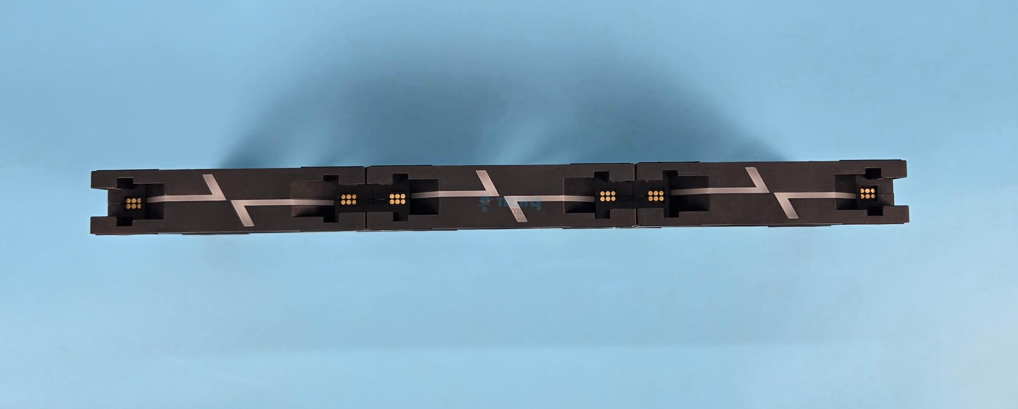 These are actual contact points to transfer the signal and power. But they have another function, which is they add much-needed strength to the interconnected fans. Once these blocks are installed, we have a strong union on the assembly.
