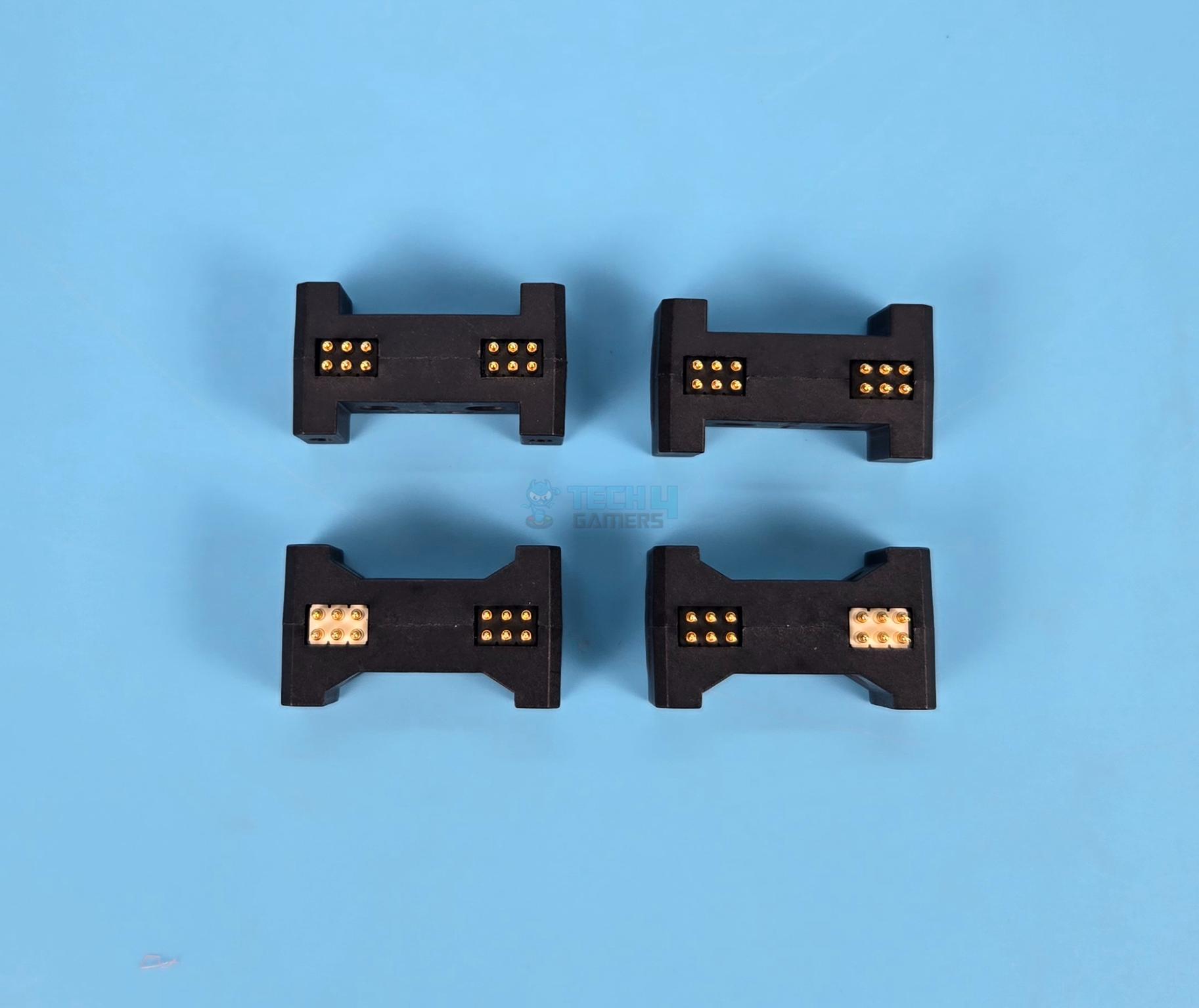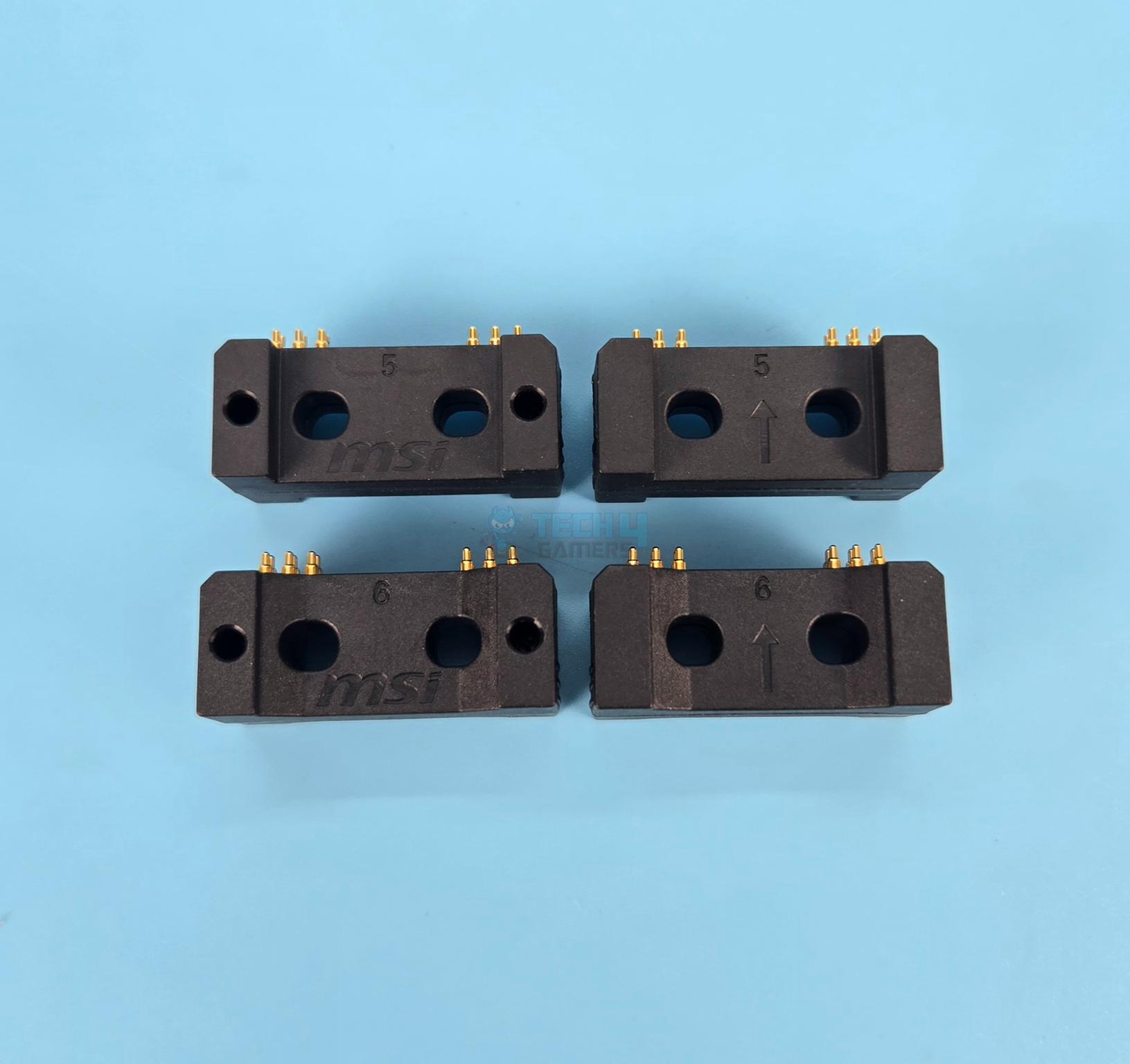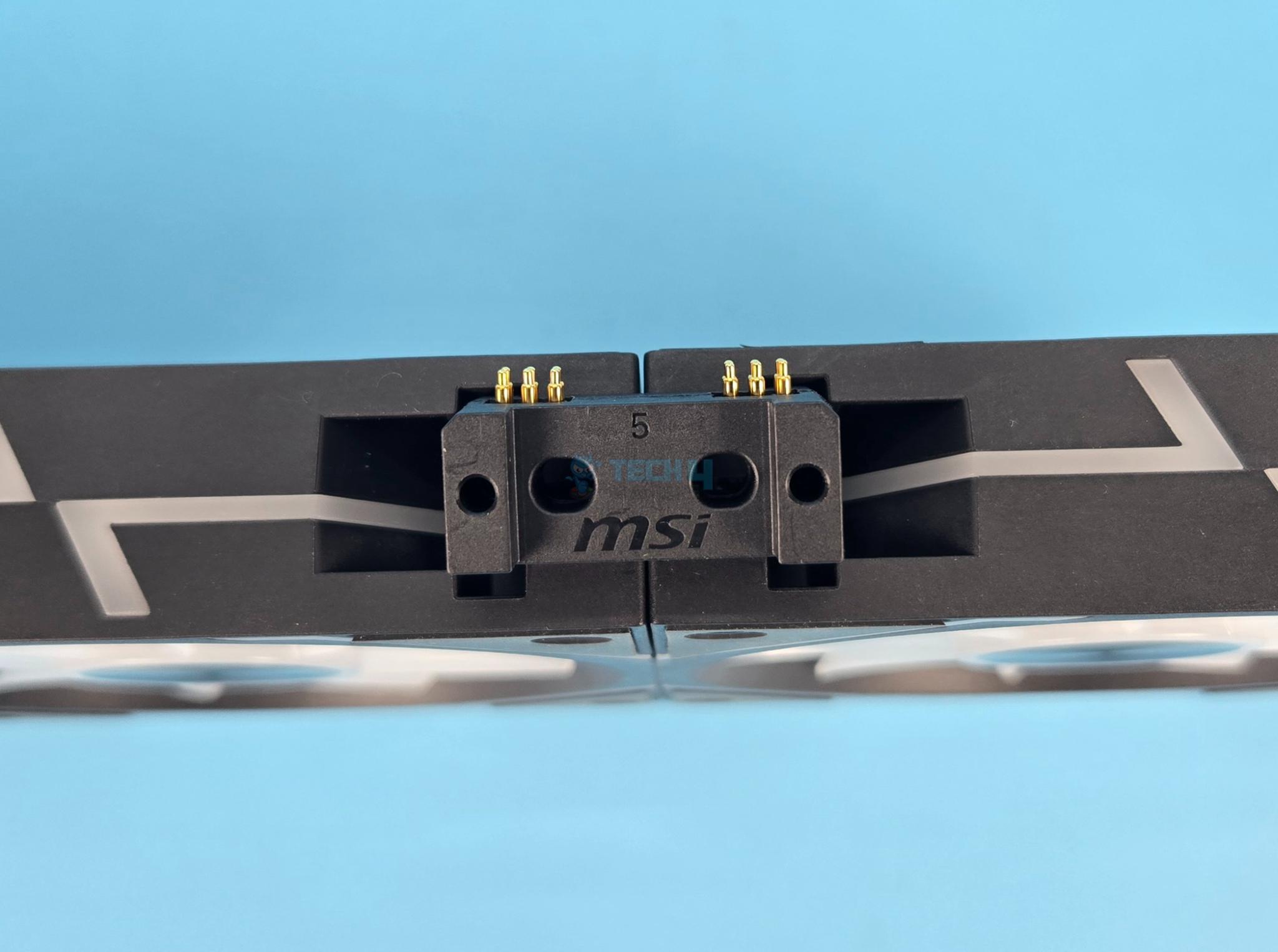 MSI has provided magnetic blocks. I refer to these as inter-connects. However, you take it, these four blocks complete the internal circuit of the fans, delivering the power and signal while adding strength.
