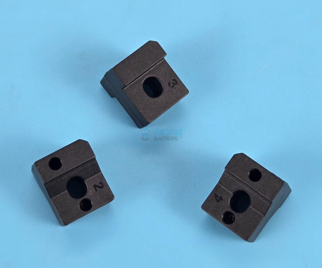 MSI has provided 3x decorative blocks. These are to be installed on the unused mounting corners. These are numbered to make it easy to identify the mounting corner to fill. Refer to the user guide for that. Why three? Because one mounting corner will have a cable connection.