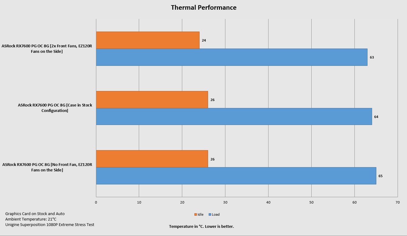 • Second thermal test by disabling the front fans of the case and installing EZ120R fans on the side.