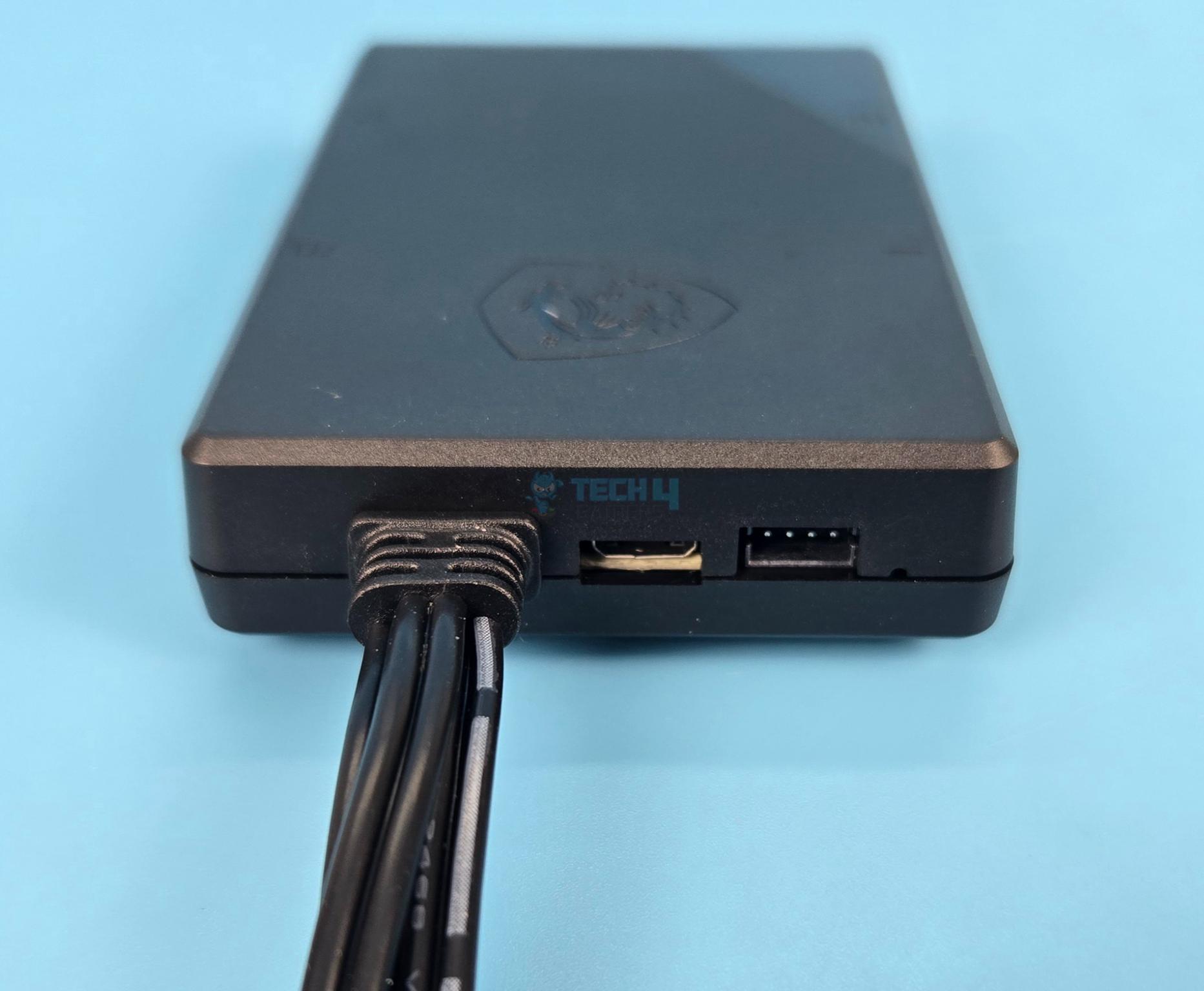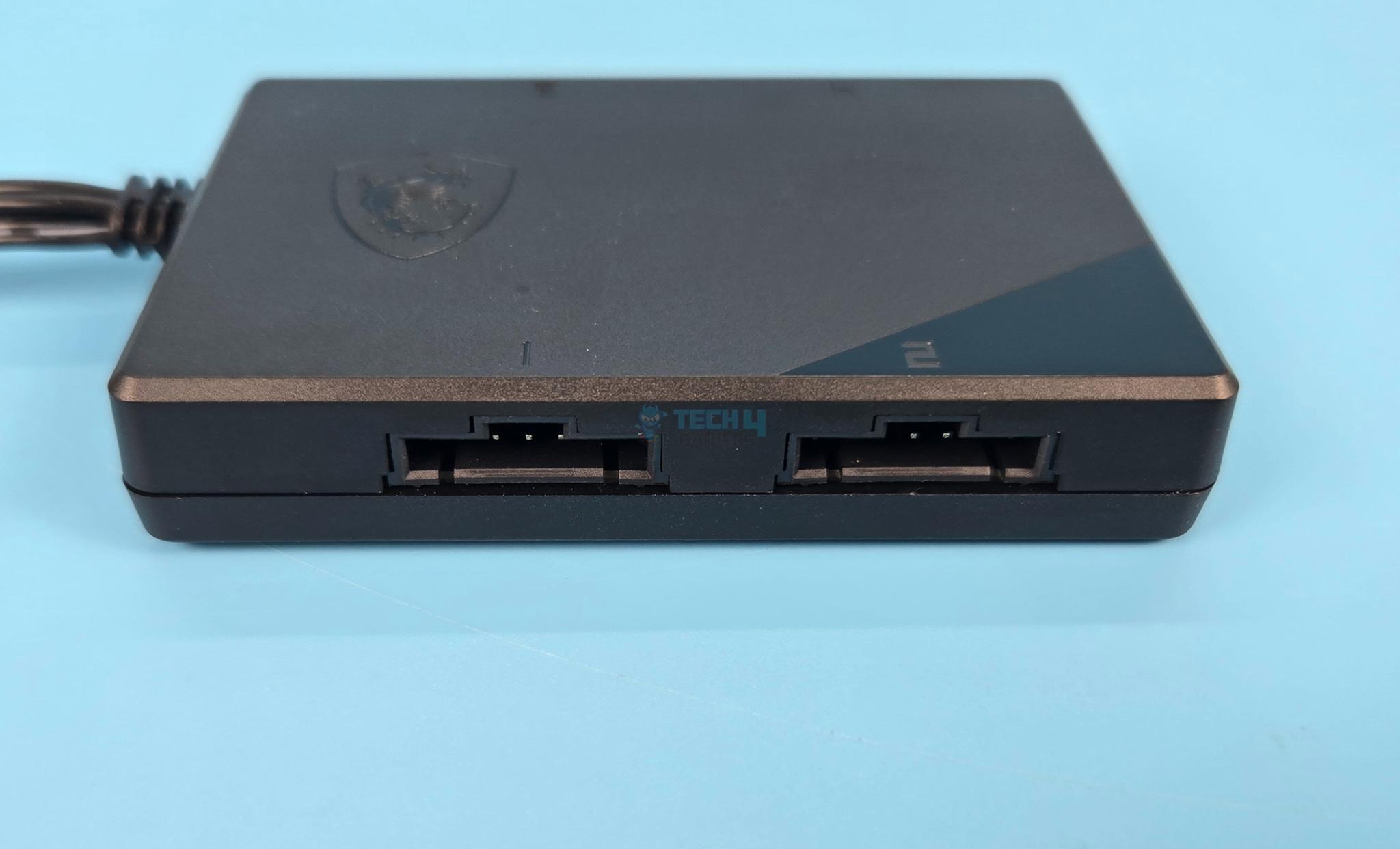 The two ports on the SATA cable side are used to connect the hub with the PC using a USB 2.0 connector and the other port connects the hub to the motherboard either using JAF port on MSI motherboards or using standard 4-pin PWM and 3-pin, 5V ARGB connectors. Hence this solution is not dependent on MSI Ecosystem.