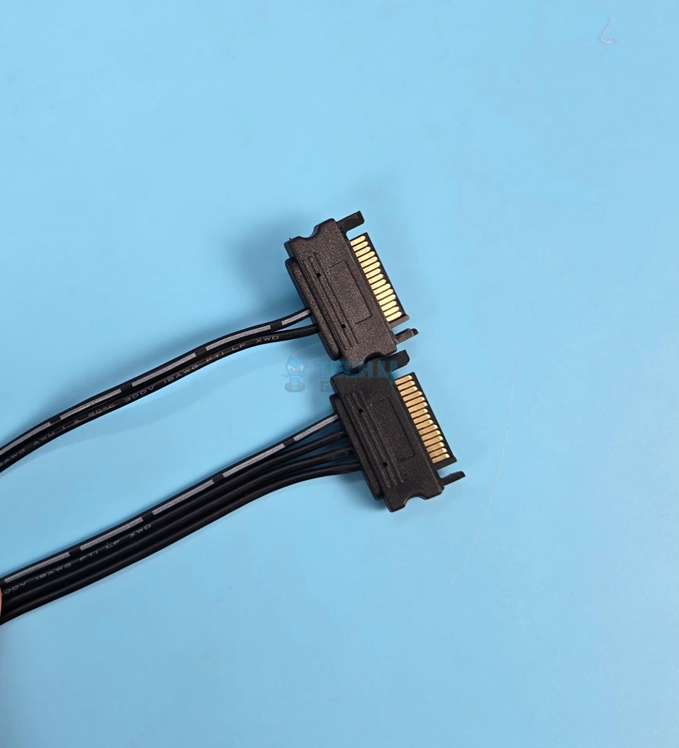 Two SATA cables come from the hub. One has 4 wires and other has 2 wires. You must use both cables if using more than 12 EZ120/R fans.
