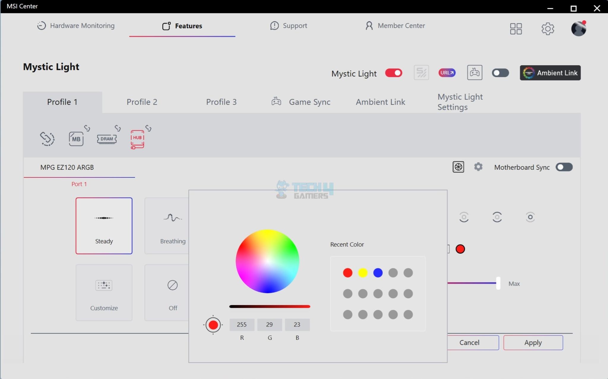 The MSI Z790 PZ motherboard does not have JAF header hence I had to use the standard 4-pin PWM and 3-pin, 5V ARGB headers on the motherboard. This is where I ran into trouble. This motherboard has only 3-pin, 5V, ARGB headers and I had to connect the EZ120R fans, front 160mm ARGZ fans of the Velox 300R and Lian Li cooler’s ARGB cable. Luckily, I have a 1-to-4 ARGB extension cable which I used for Lian Li and PC Case ARGB devices. I had to connect the EZ120R hub’s ARGB cable separately as it does not pick the other devices connected on the extension cable.