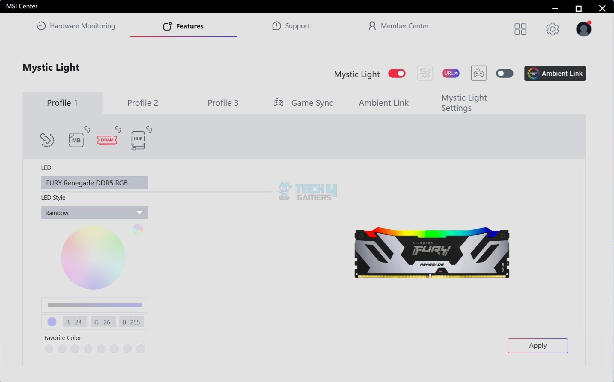 You have a full control over the lighting of the EZ120R ARGB fans and the other ARGB devices. The software infact detects the Kingston Fury Renegade ARGB DDR5 kit. You can also synchronize all devices for a single control.