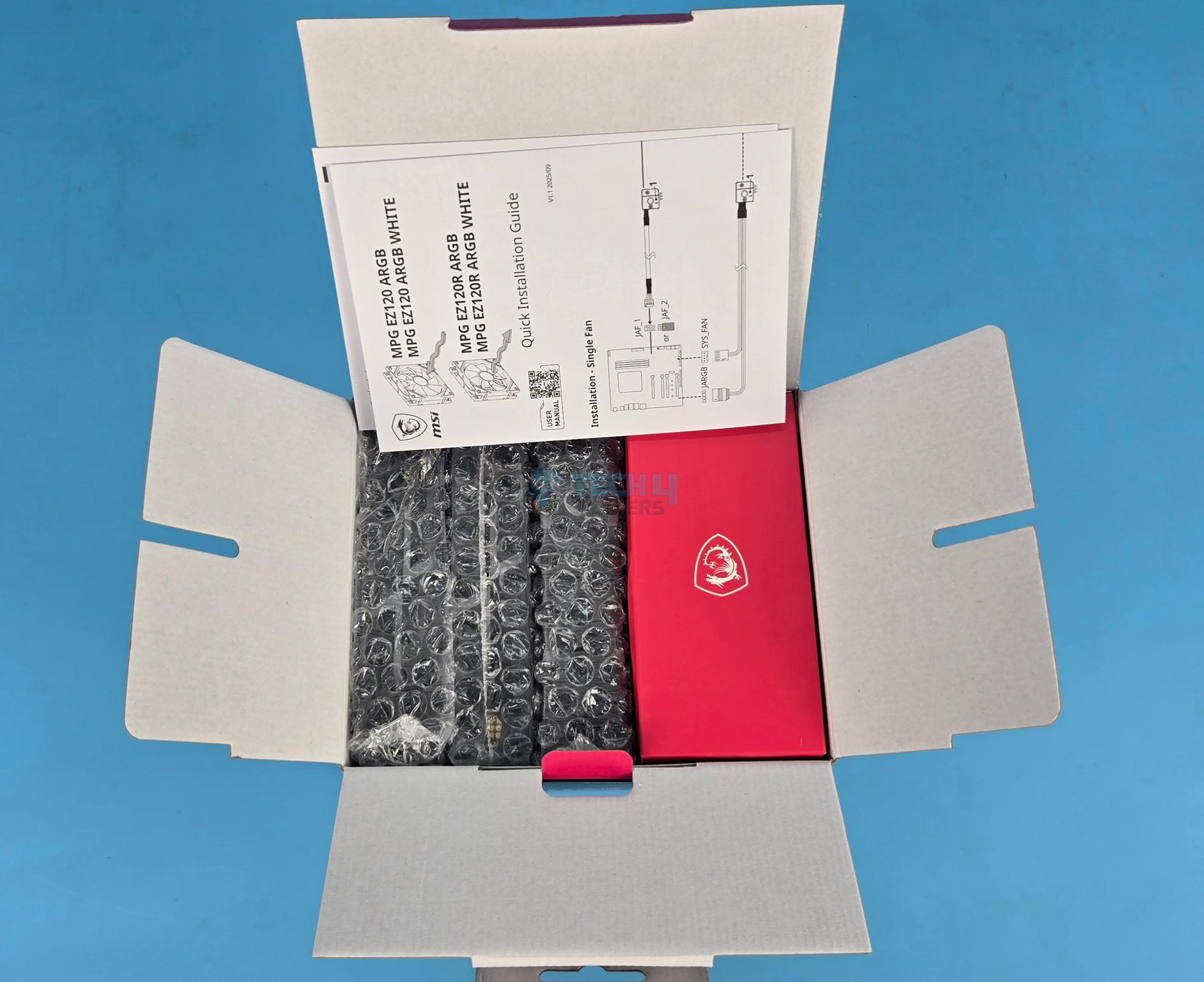 The good thing is that I already have MSI MAG PANO 100L PZ White and MSI MPG Velox 300R Airflow PZ in black. The EZ120R ARGB is available in single-fan, 3-fan, and 4-fan packs. This is good thinking by the MSI. However, the hub is only provided in the 3 and 4-fan packs.