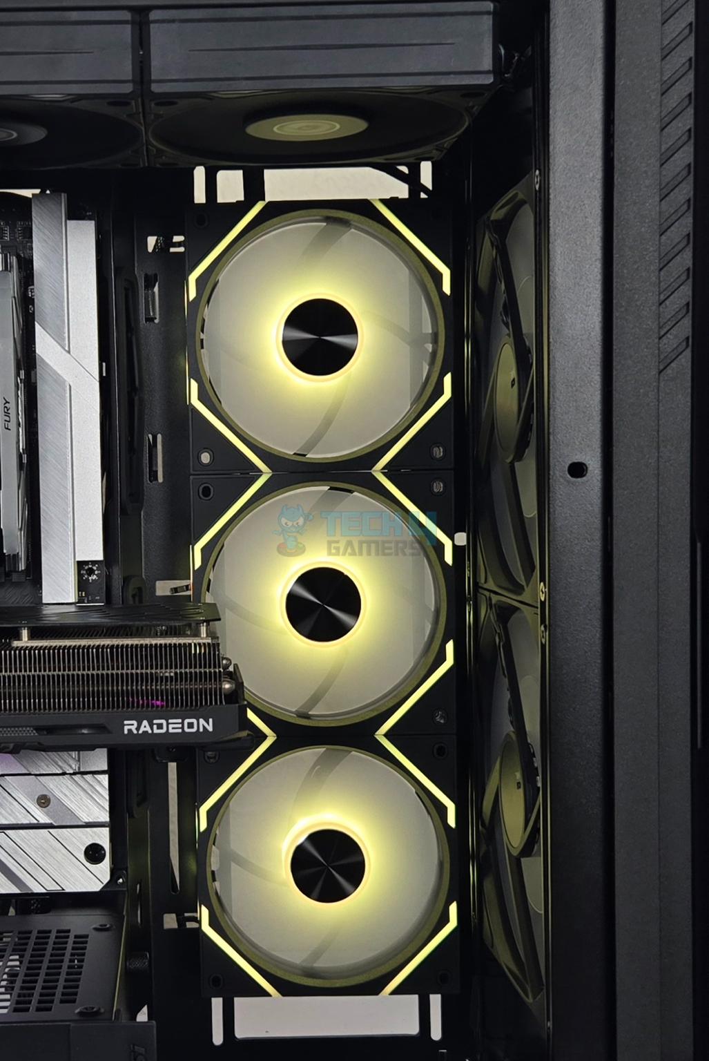 These fans serve as air intake and provide sufficient airflow for adequate thermal performance.