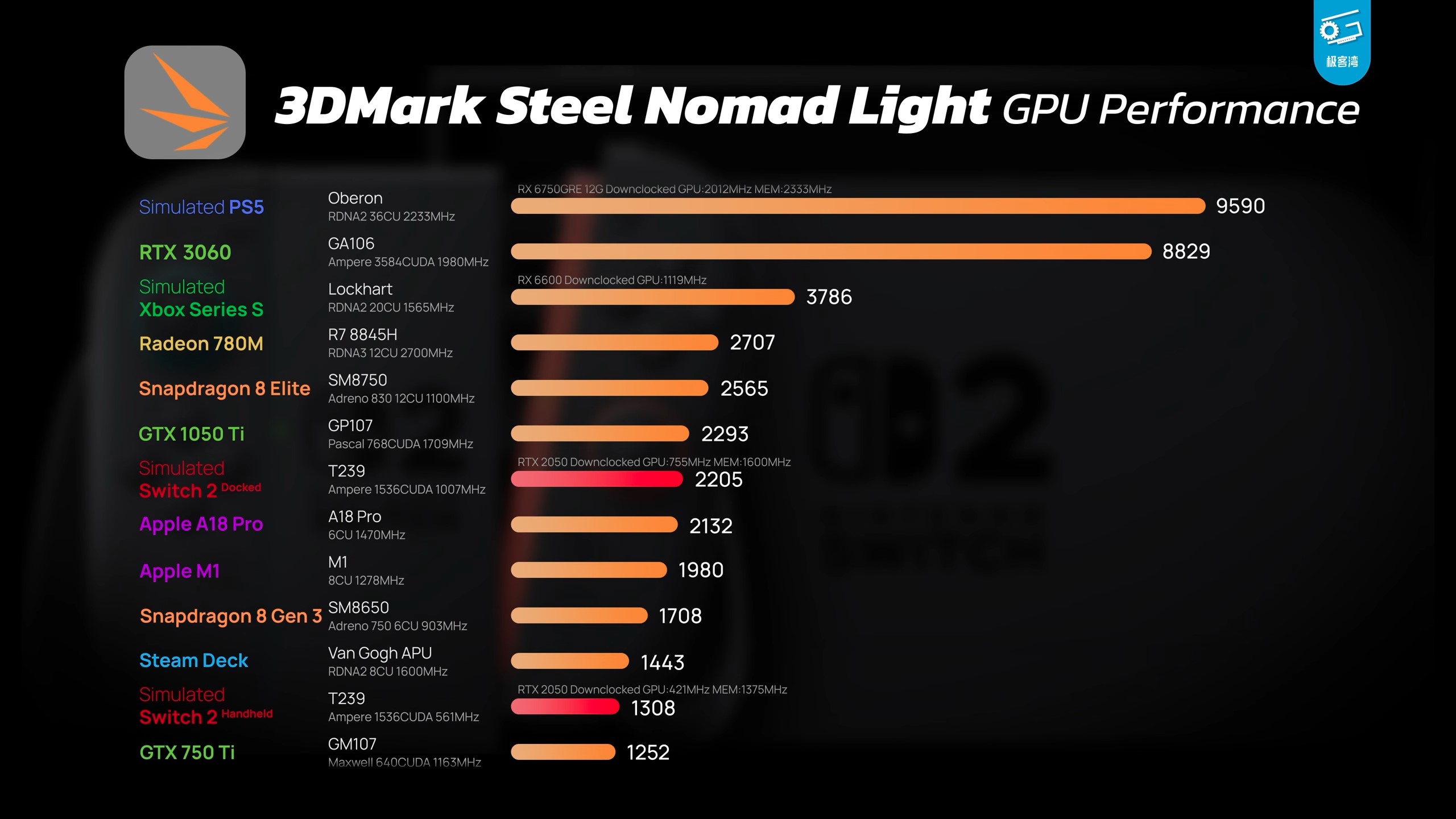 Moreover, the PS5 proves to be over 4x as capable in the same test. Looking at the handheld results, Nintendo’s hardware could manage performance similar to the Nvidia GTX 750 Ti, putting it close to the PS4 and Steam Deck’s results.