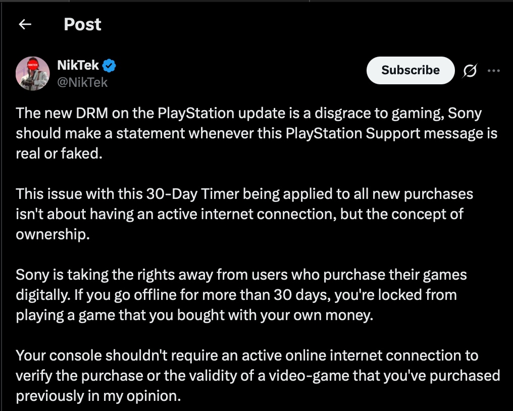 Players are rightfully outraged at this and are calling for a boycott. Some even shared screenshots from E3, where Sony especially highlighted that players won’t require regular check-ins to keep their game license.