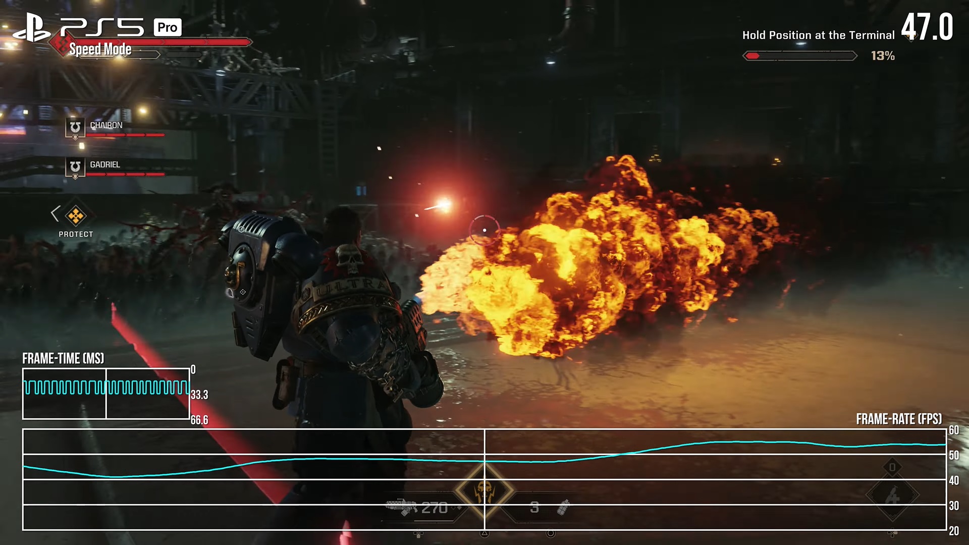 The PS5 Pro can have a noticeable performance boost over the base console in Space Marine 2, but it still can’t maintain 60 FPS. In some instances, the frame rates are abysmal, dropping to almost 40.