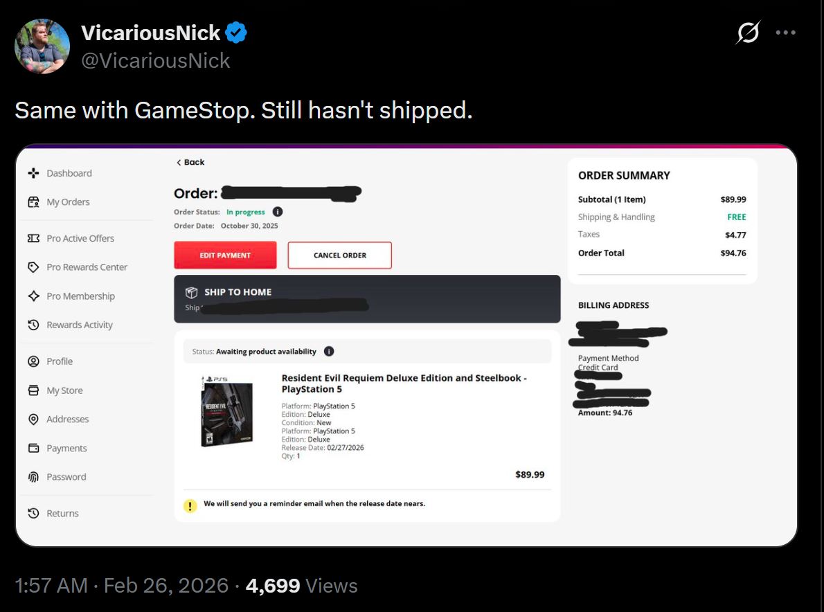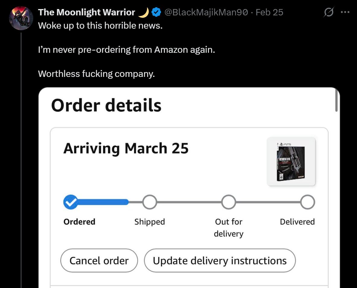 Many have taken to social media to share the status of their Amazon pre-orders. Users BlackMajikMan90 and JimAlan shared screenshots confirming that their orders had been pushed back further to later than the February 27 release date.