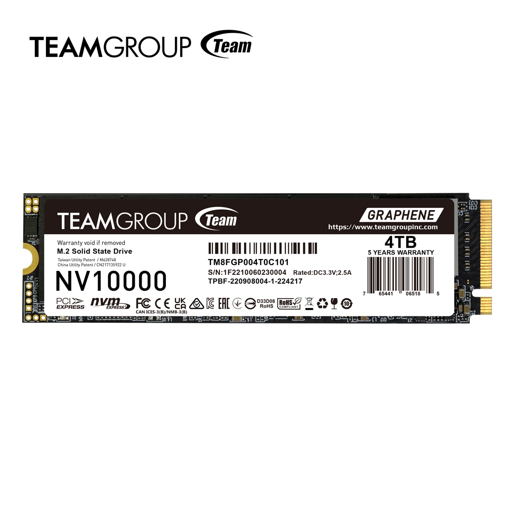 The NV10000 comes in 1TB, 2TB, and 4TB capacities and supports both Intel and AMD platforms for desktops and laptops. To maintain performance under load, it features TEAMGROUP’s patented graphene heat dissipation label, keeping temperatures stable during extended use.