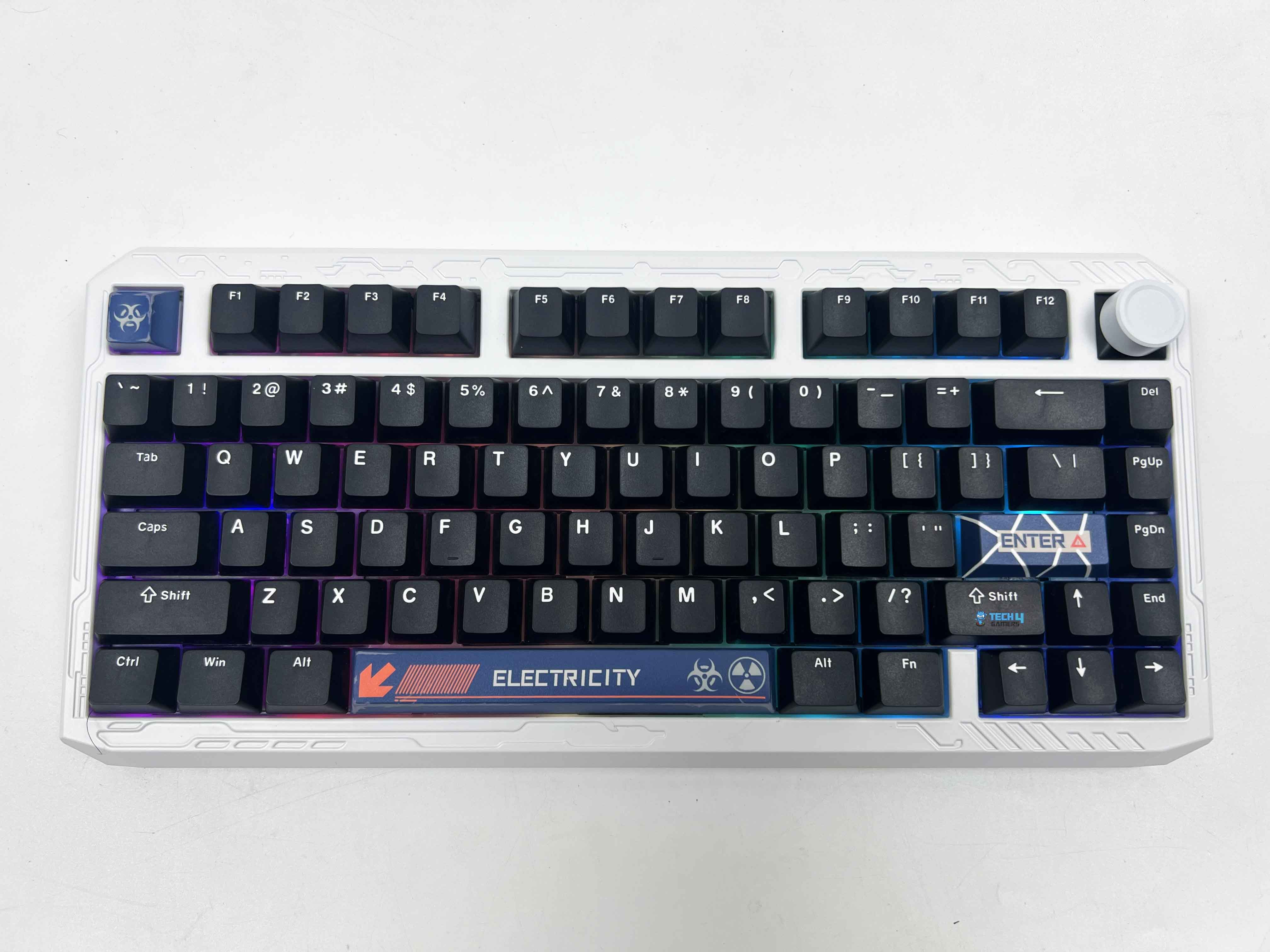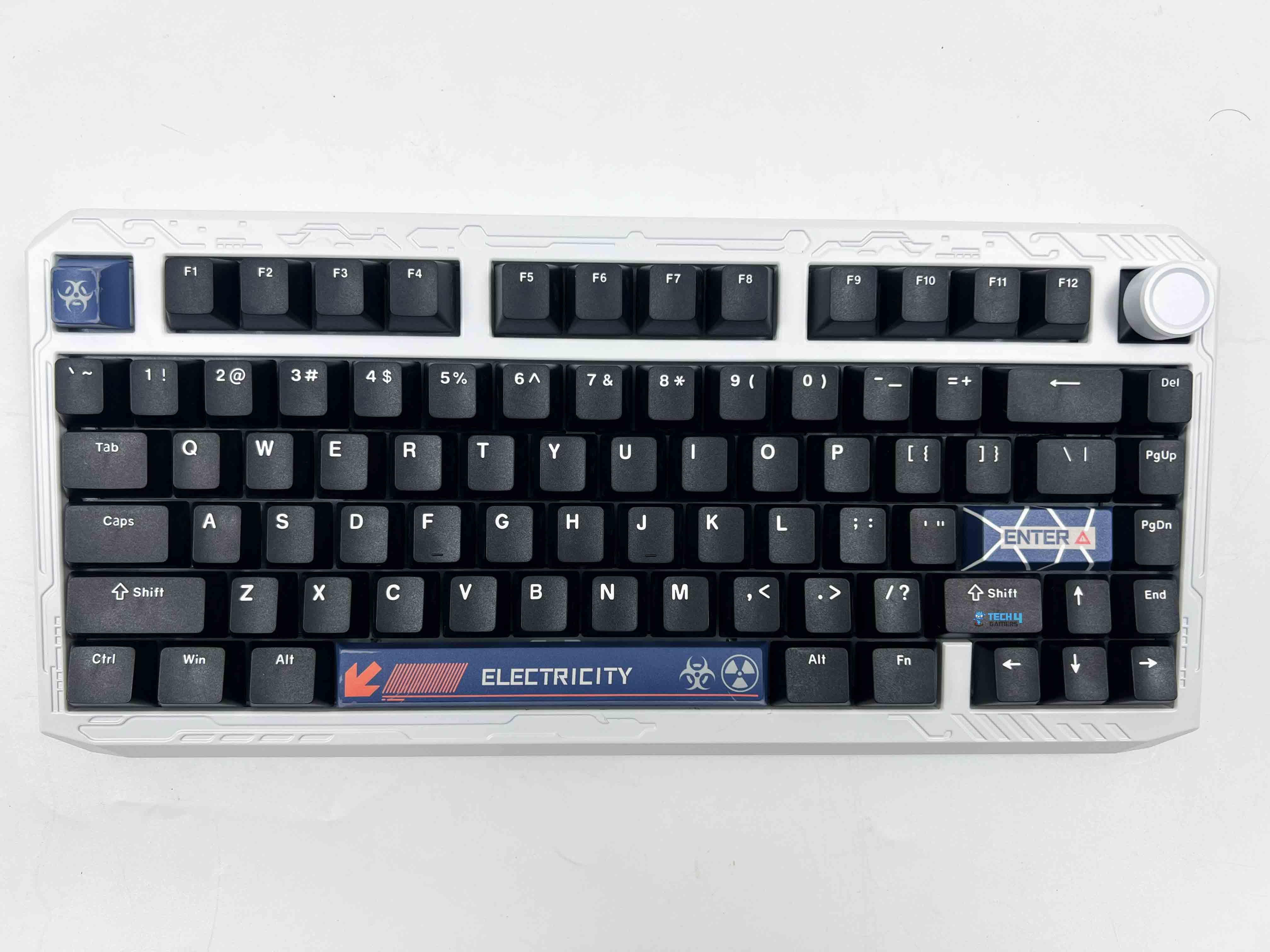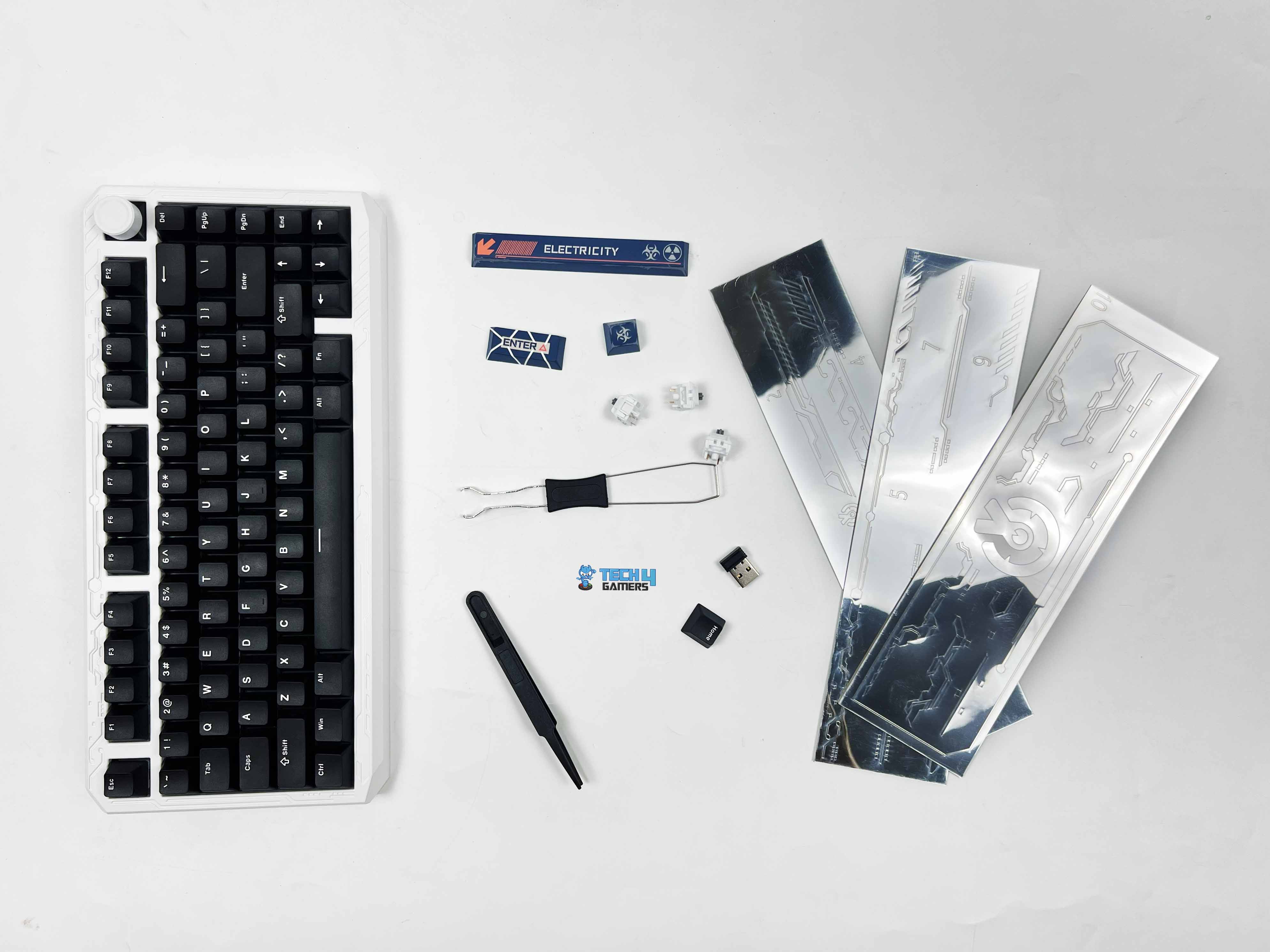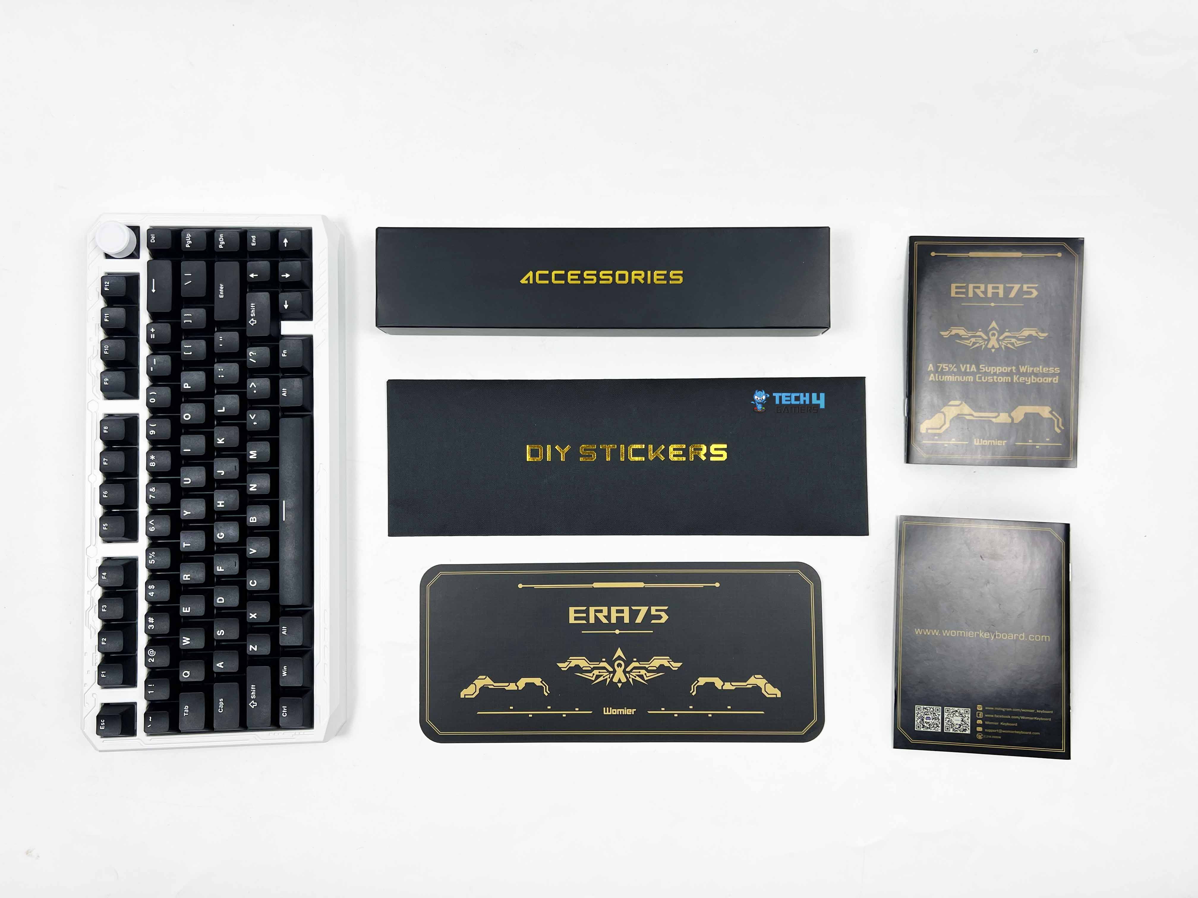 The Womier ERA75 comes in several color options. You can choose from Cyberpunk, Black Gold, Doomsday, Bronze, Ice, and Interstella, each featuring its own unique theme and different matching extra keycaps. The one I have for this review is the Doomsday variant, which has an all-white body paired with black keycaps. Interestingly, all of the variants share these black keycaps, with the main difference only being in the color of the keyboard’s body.