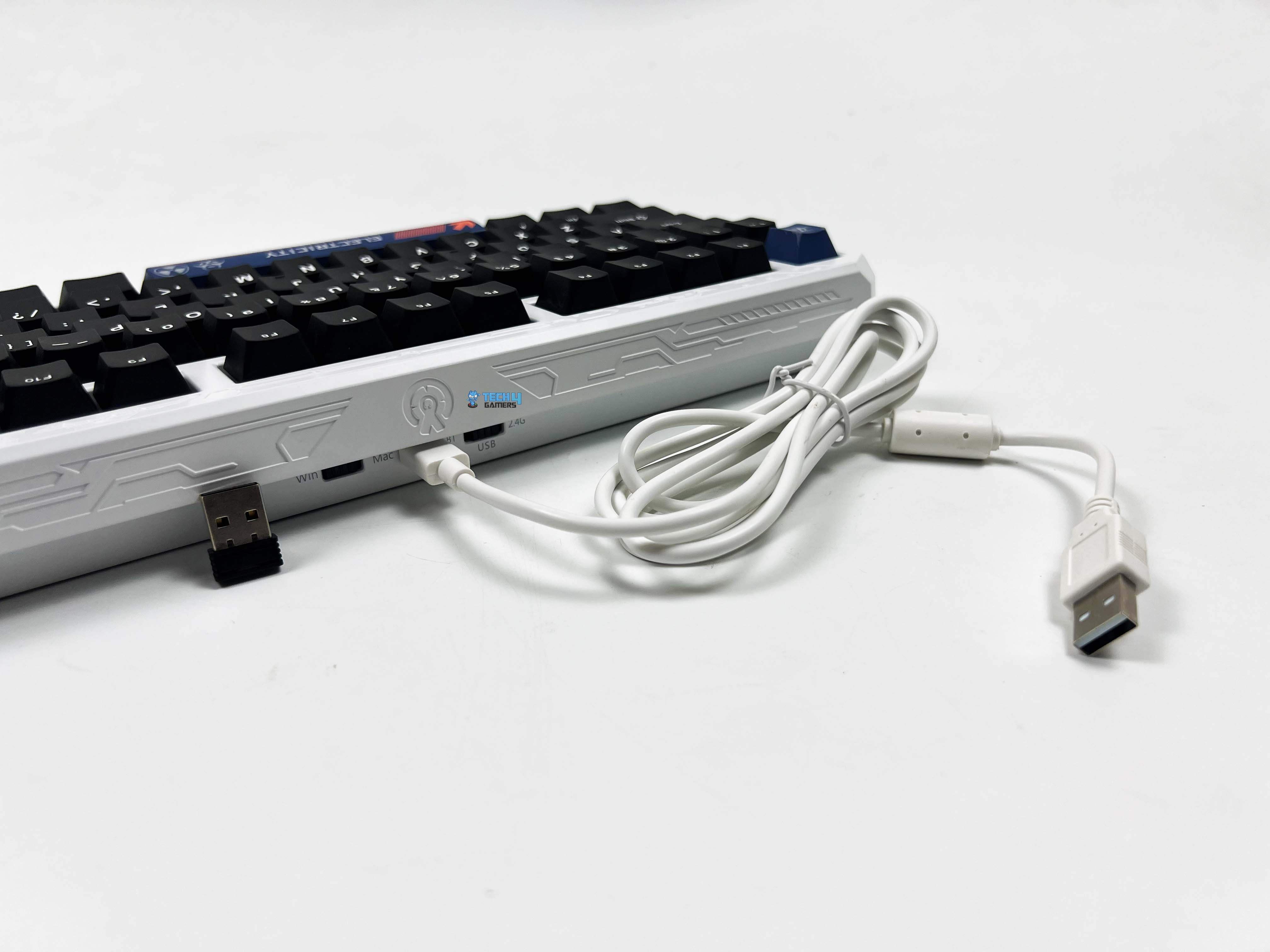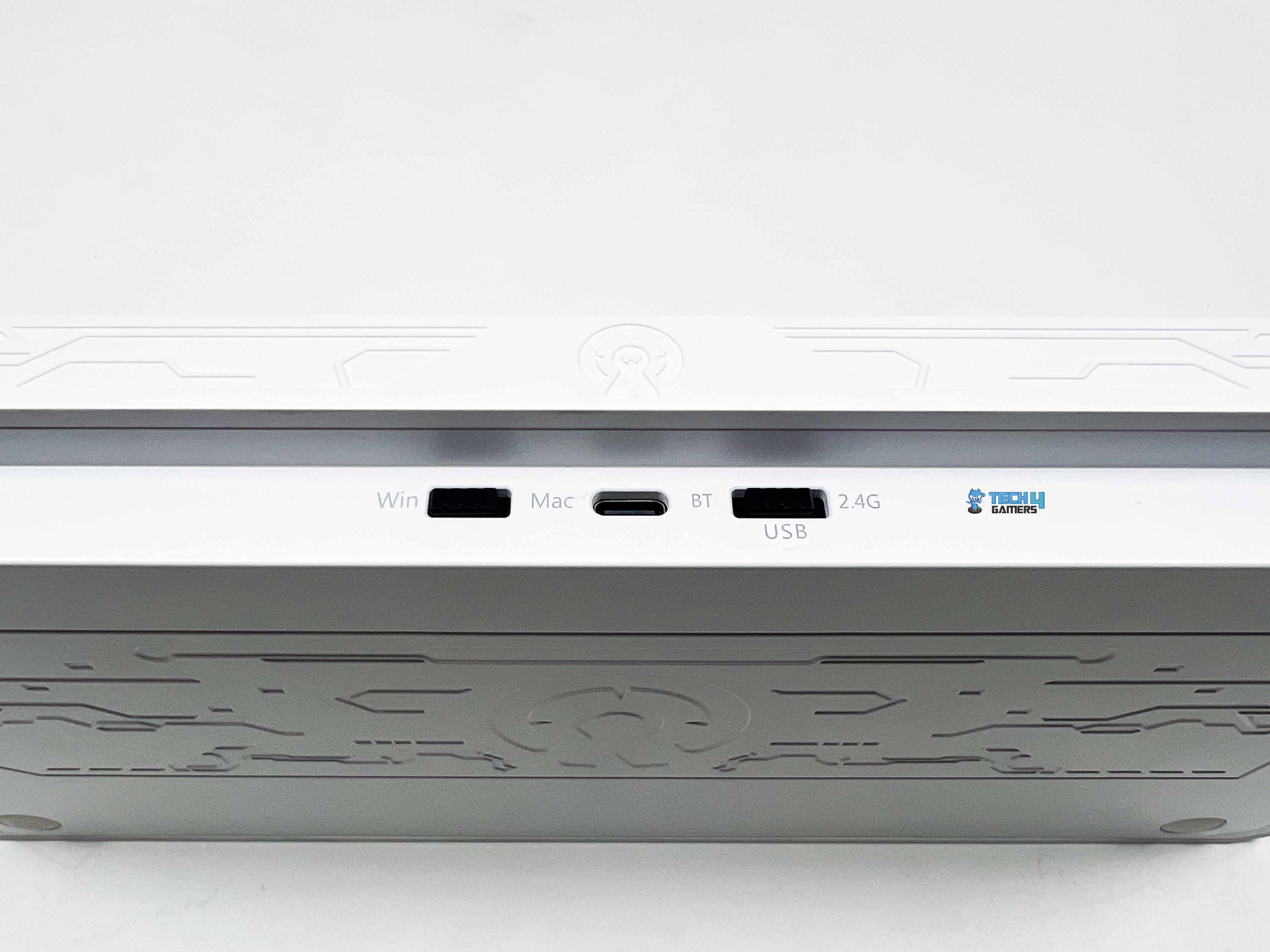 The Womier ERA75 provides three connectivity options, which include wired, 2.4GHz wireless, and Bluetooth, so you can easily switch between them depending on how and where you’re using it. At the top of the keyboard, right in the center, there’s a USB Type-C port. On the left side of the port, you’ll find a toggle switch for Mac and Windows, since the keyboard is fully compatible with both operating systems, along with Linux, iOS, and Android.