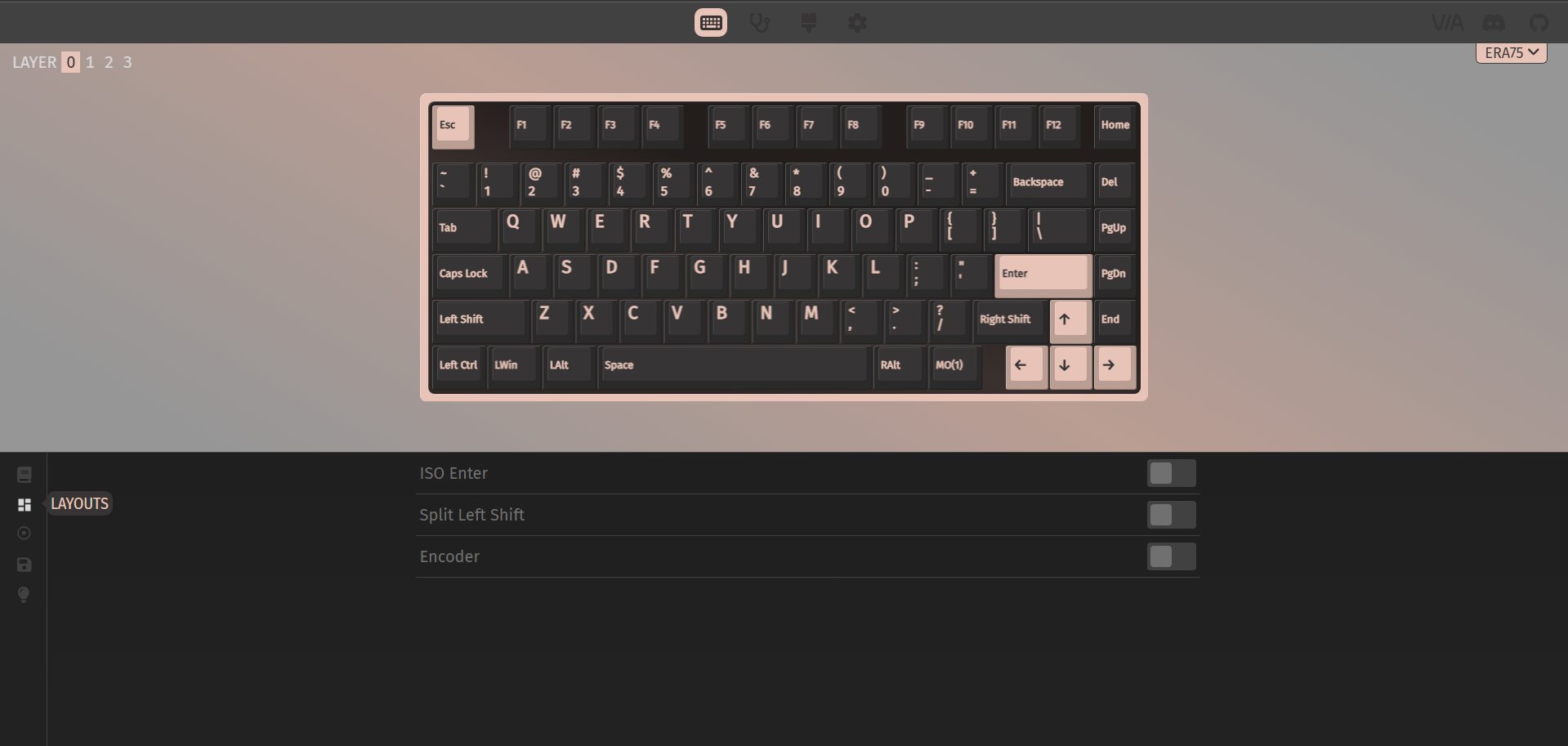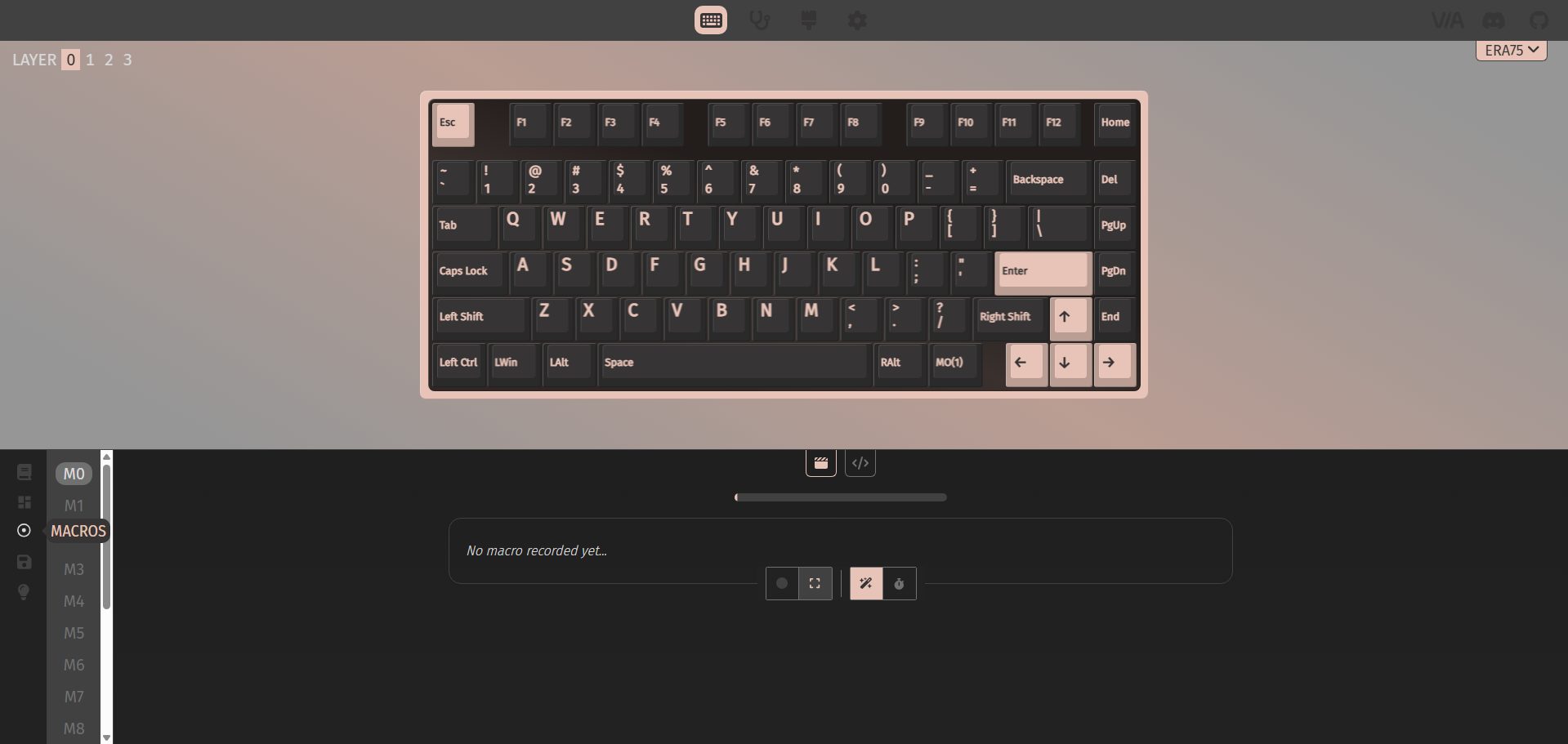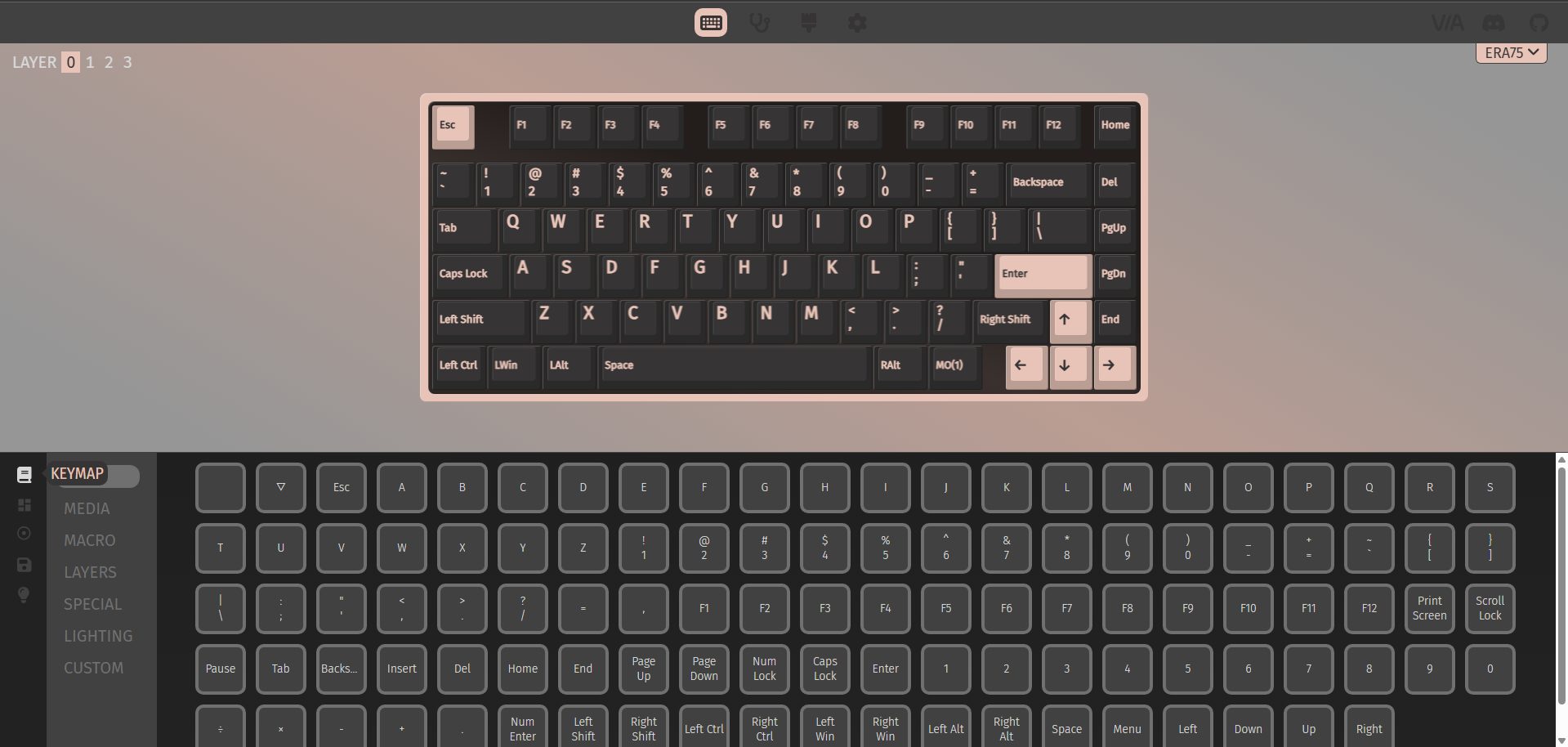 The Womier ERA75 is fully compatible with VIA’s web-based configurator, making customization a breeze. Getting started with it is straightforward. First, you’ll have to download the ERA75 JSON file from the product’s official page. Then, head over to the VIA web app. Once there, open the Design tab in the settings and load the JSON file you downloaded. This imports the keyboard layout into VIA. Next, go to the Configure tab, click “Authorize device+”, and select your ERA75 from the list.