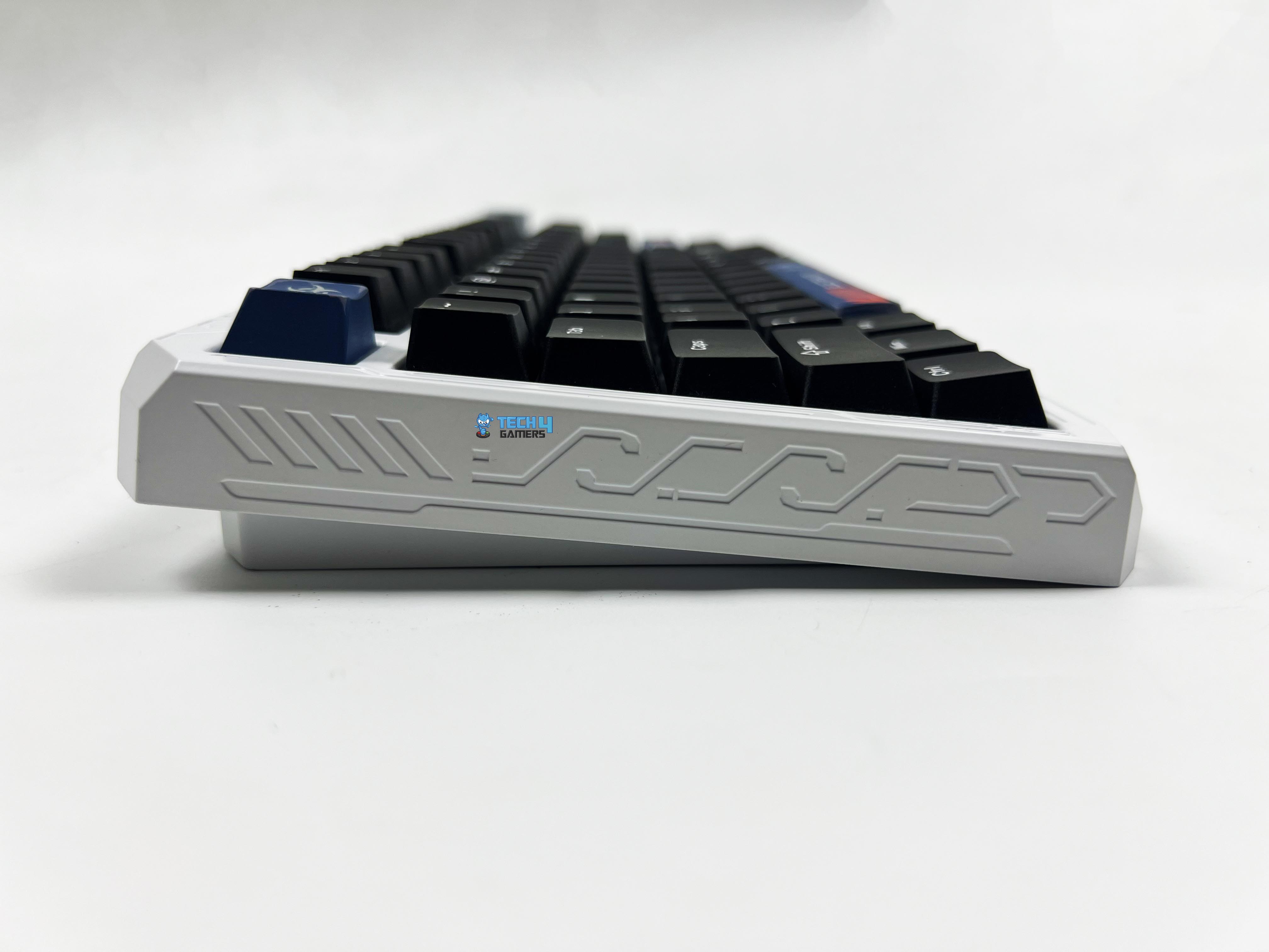 Taking a closer look at the keyboard, you’ll notice that Womier has added engraved patterns on each side of the case. These are meant for the DIY stickers that come in the box. You can cover the entire keyboard with them or place a few stickers here and there. The corners are cut in a unique way that is kind of chamfered, but not in the usual sense. For a broader look at other top-tier boards, you can check out our best gaming keyboards roundup to see what else is available in the market.